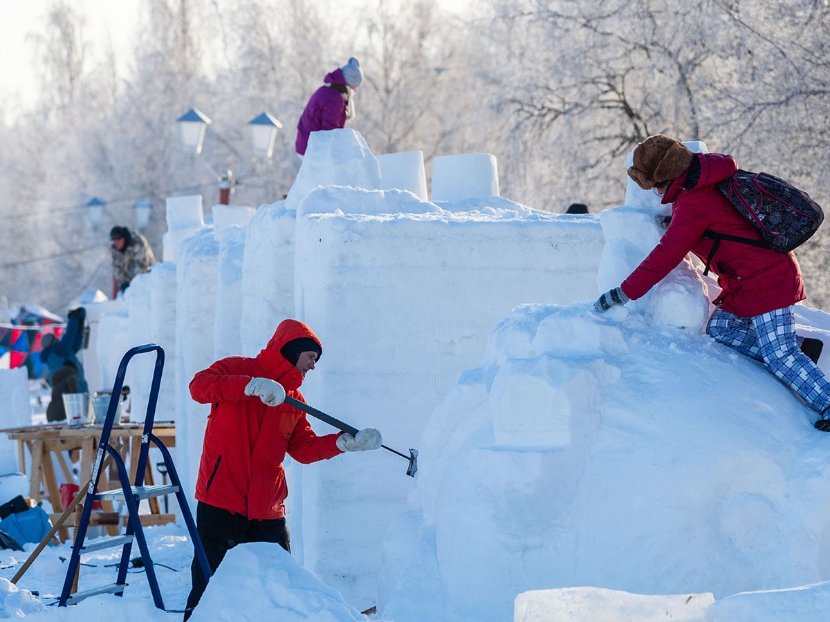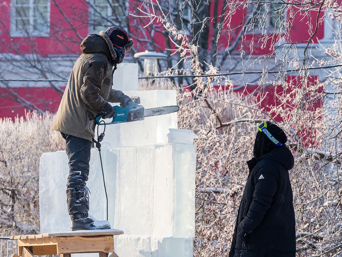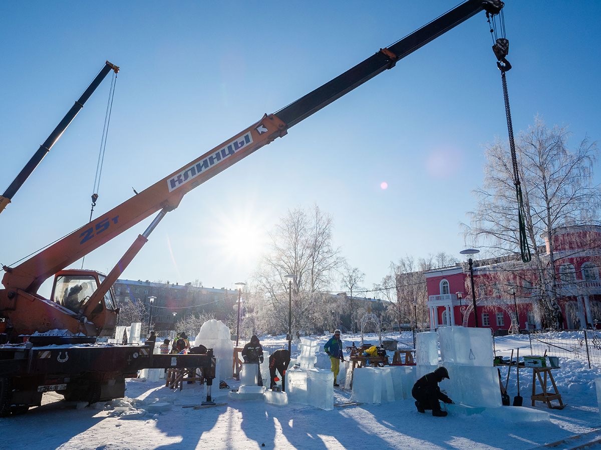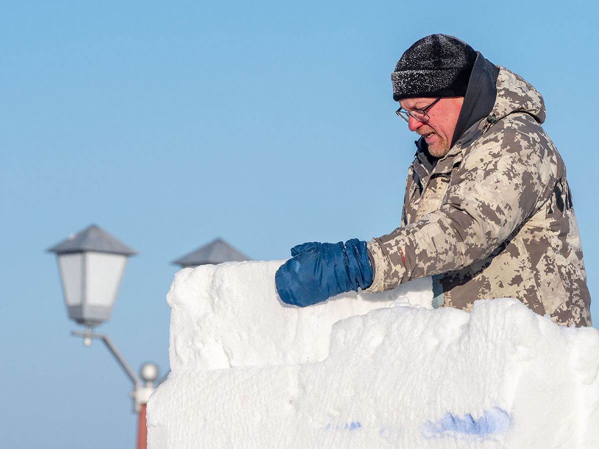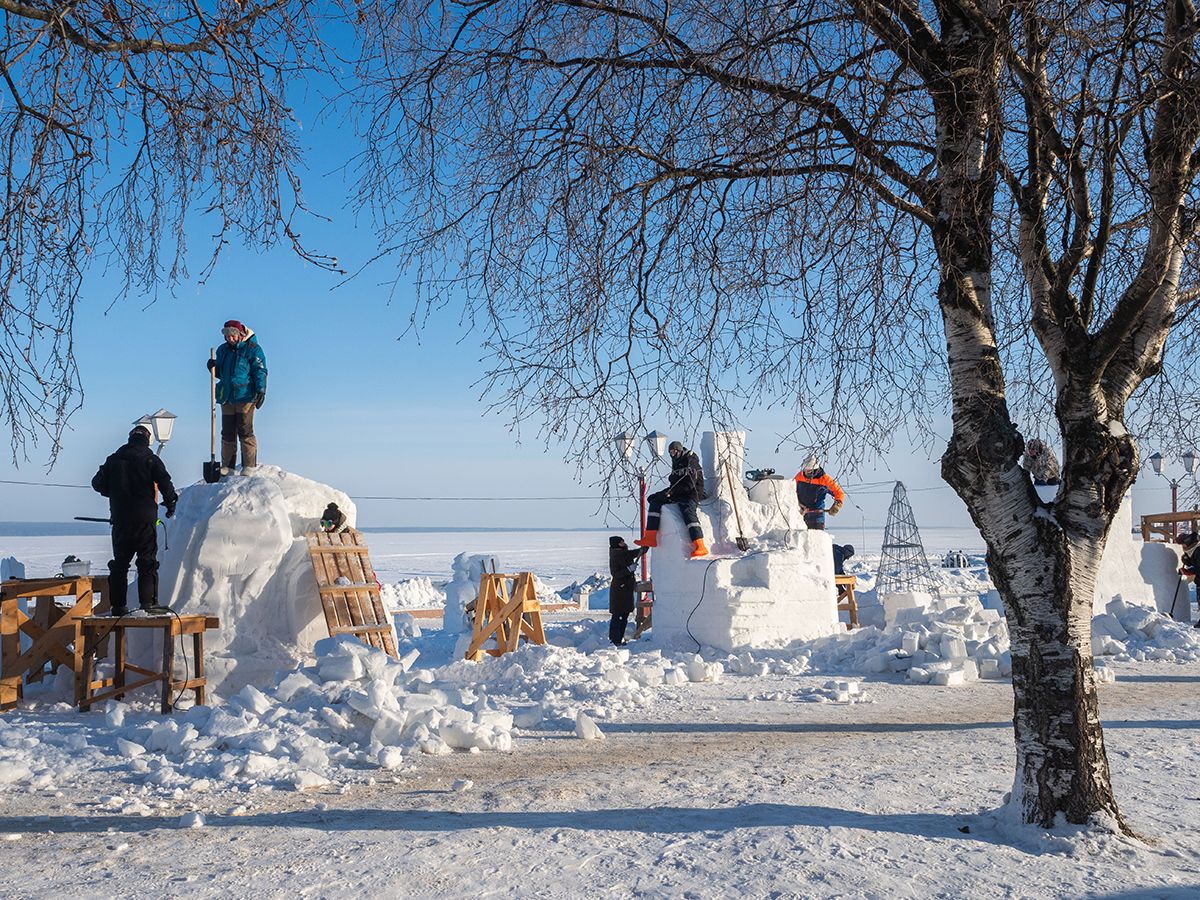 Скульпторы приступили к работе, вчера появились первые фото с площадки на Онежской набережной. Сегодня здесь побывал известный петрозаводский фотограф Игорь Подгорный. Публикуем большой фоторепортаж с процессом создания ледовых и снежных скульптур.
