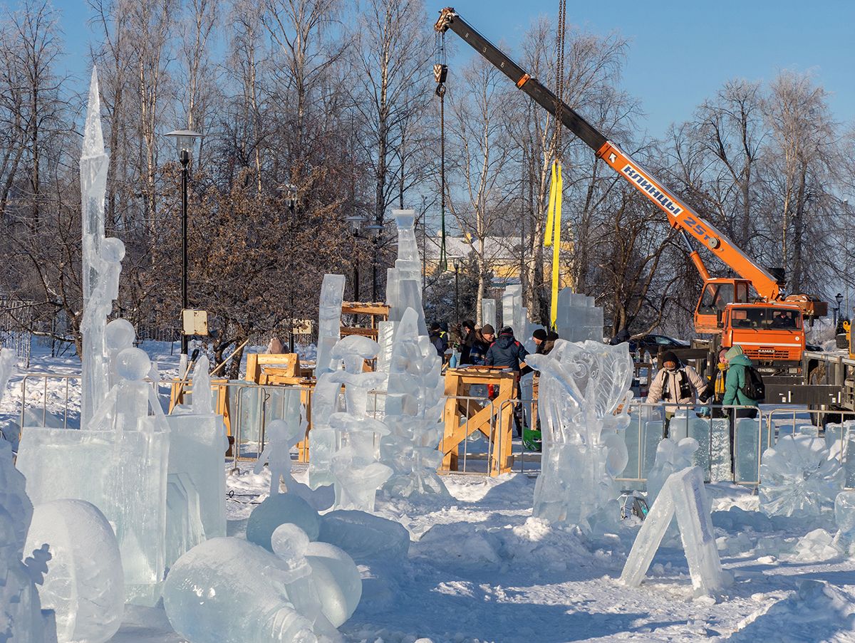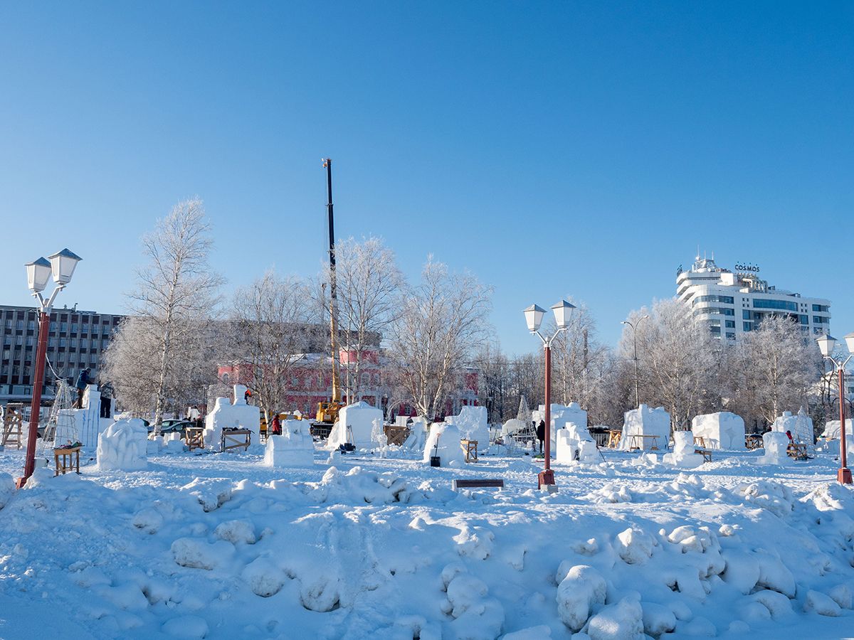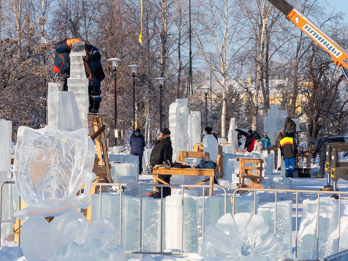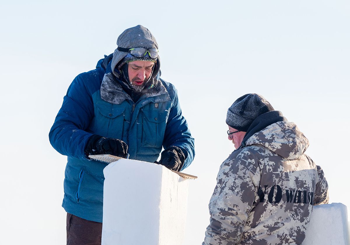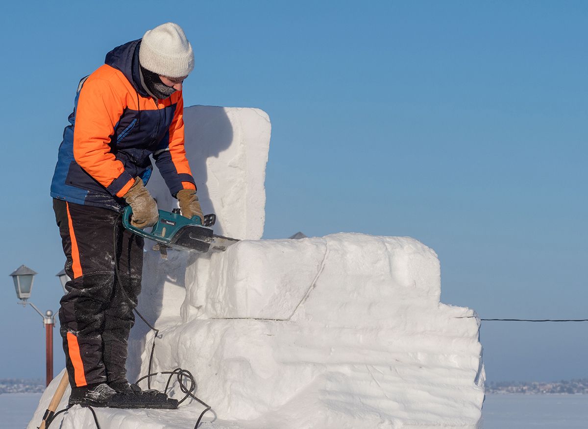 Скульпторы приступили к работе, вчера появились первые фото с площадки на Онежской набережной. Сегодня здесь побывал известный петрозаводский фотограф Игорь Подгорный. Публикуем большой фоторепортаж с процессом создания ледовых и снежных скульптур.