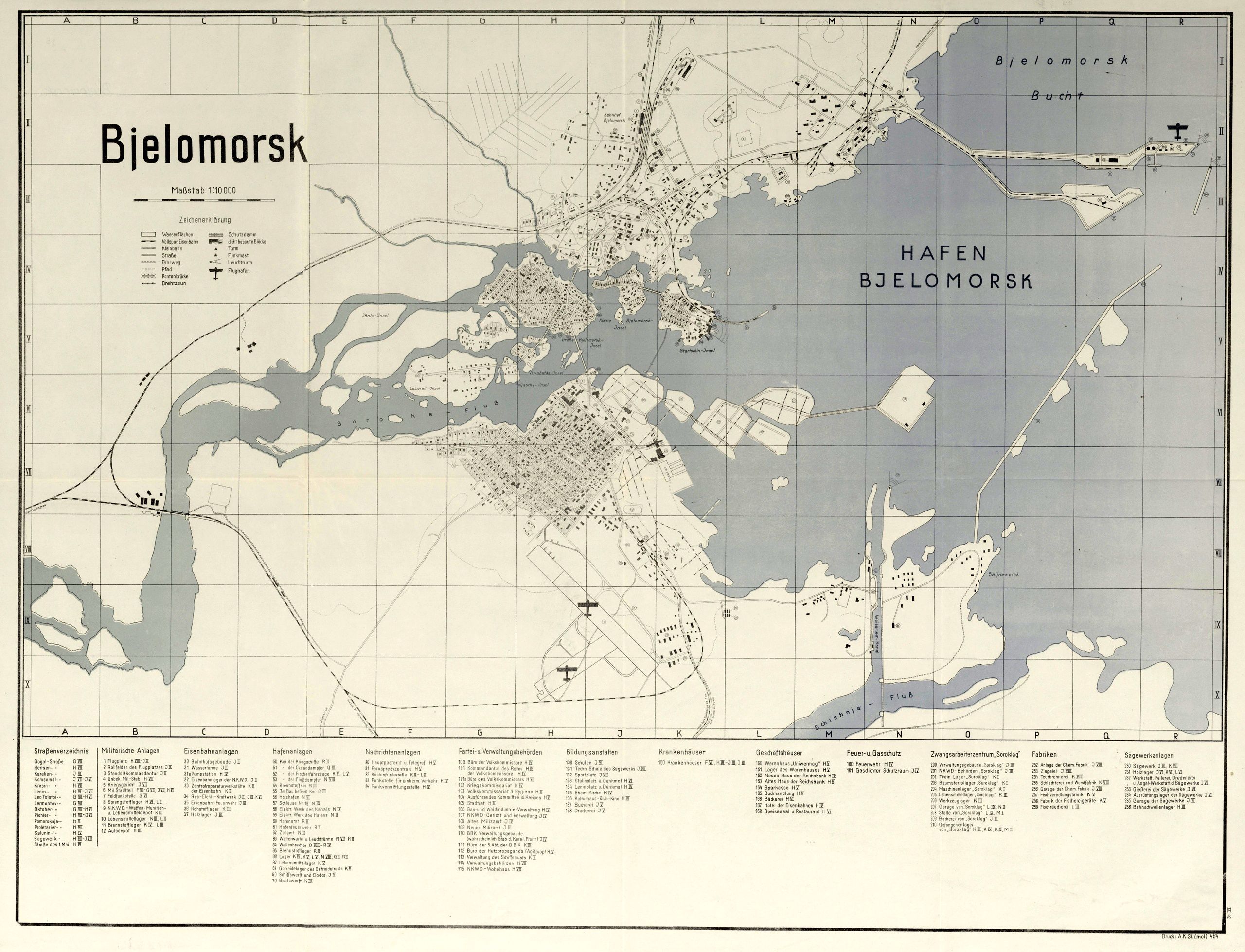 Карта также показывает, что противник не был в курсе о расположении многих военных объектов: он неправильно указал здание штаба фронта, не отмечены отделы штаба и т.д. Представленная карта и в особенности военно-экономическое описание к ней представляет огромную ценность для изучения истории Беломорска — прифронтовой столицы, а также истории тыла Карельского фронта в целом.