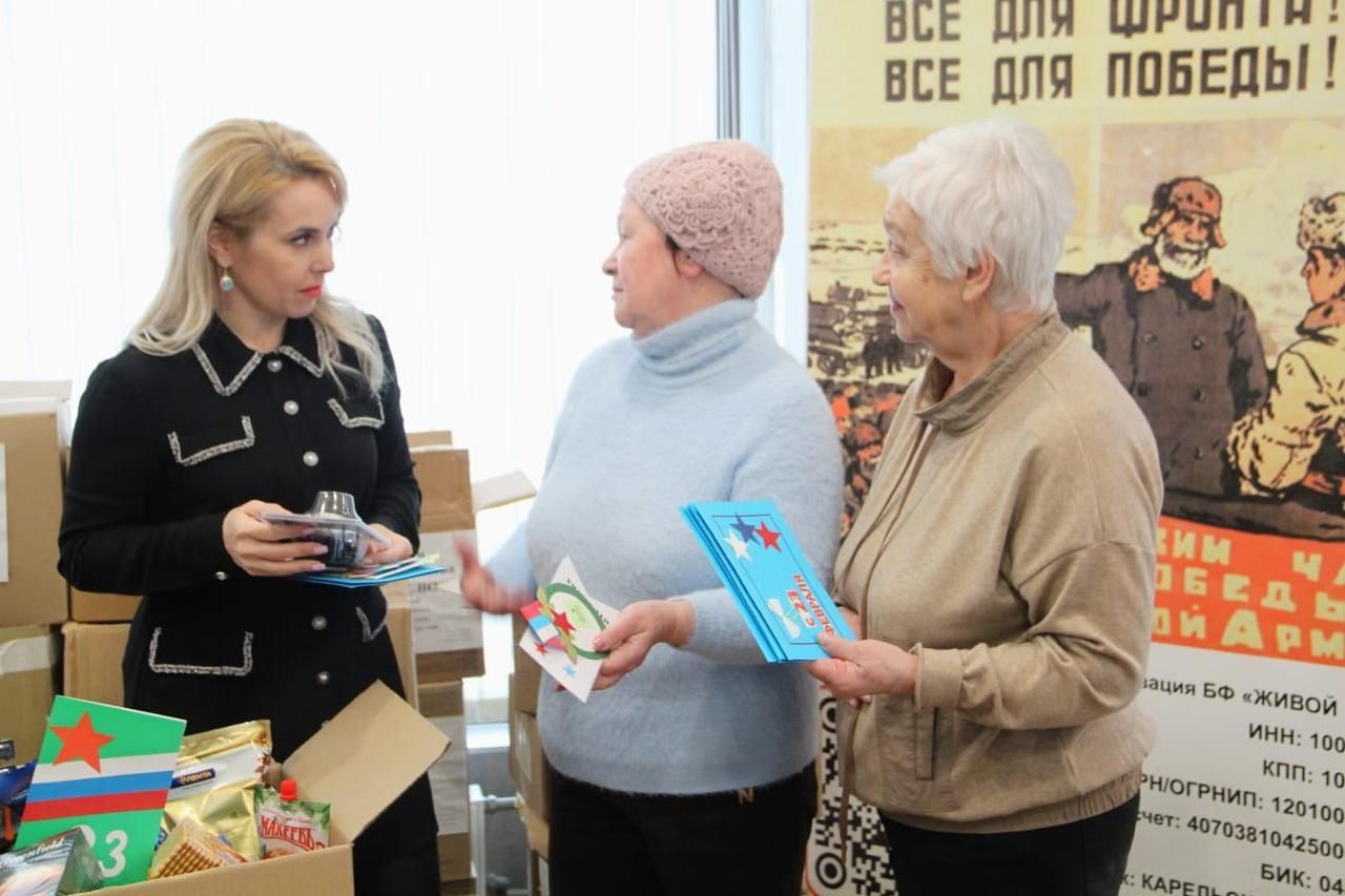 В акции приняли участие председатель Петрозаводского городского совета Надежда Дрейзис и руководитель регионального отделения Союза женщин России Елена Малышева. Они также передали детские рисунки и открытки от воспитанников центра «Надежда».