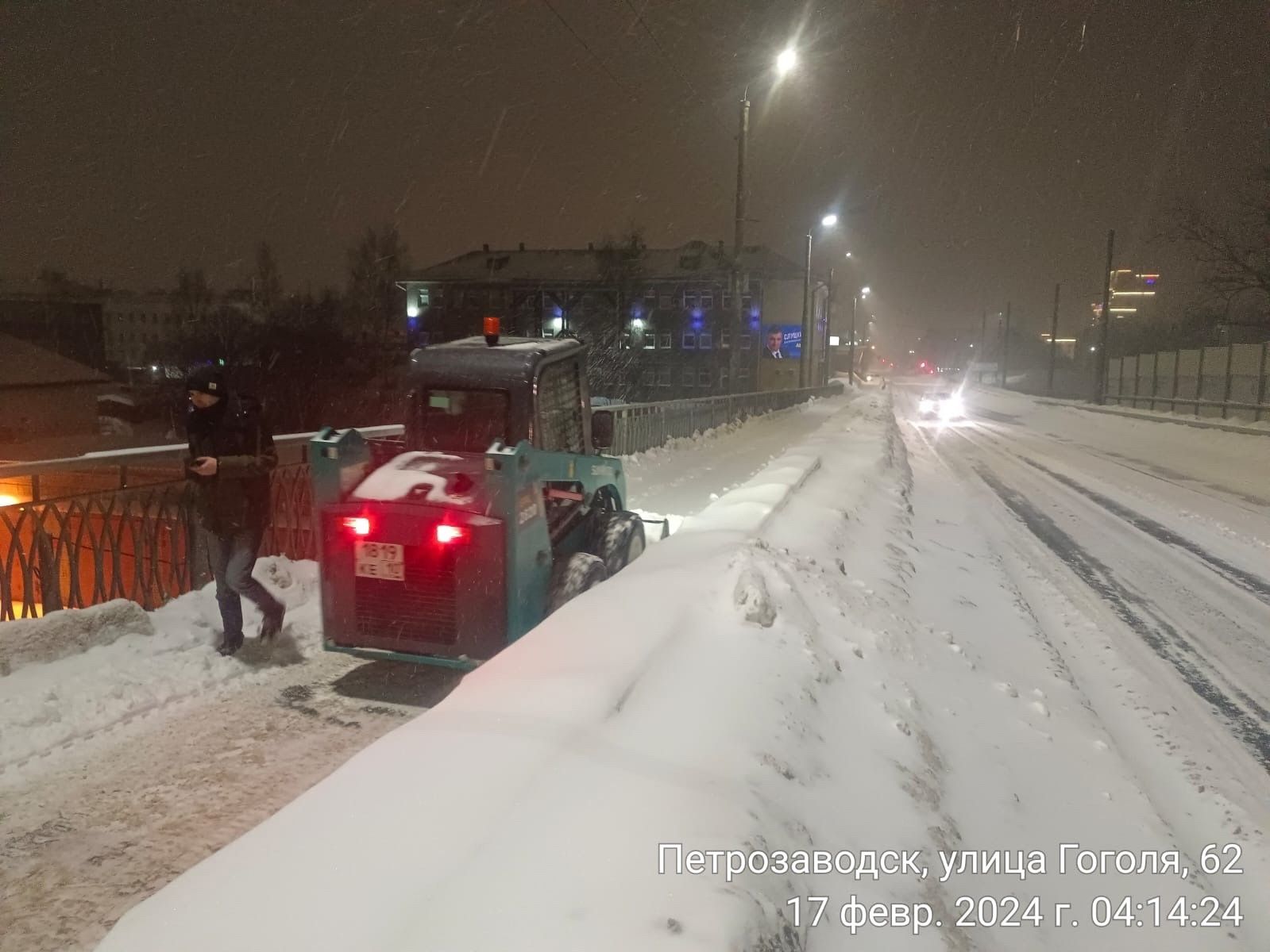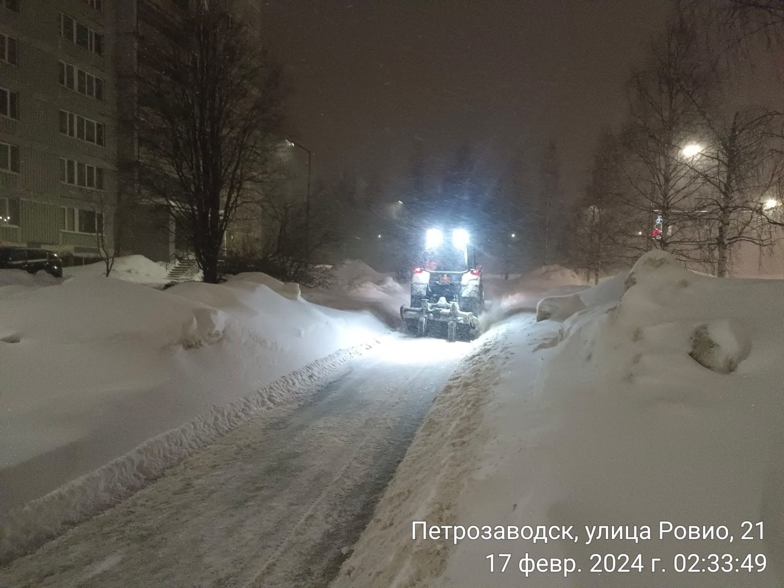 Прошедшей ночью техника и рабочие Кондопожского ДРСУ расширяли тротуары и проезжие части во всех районах города, обрабатывали дороги песчано-соляной смесью в период обильных осадков, чтобы избежать образования уплотнения снега. Особое внимание было уделено маршрутам, по которым утром начал движение общественный транспорт.