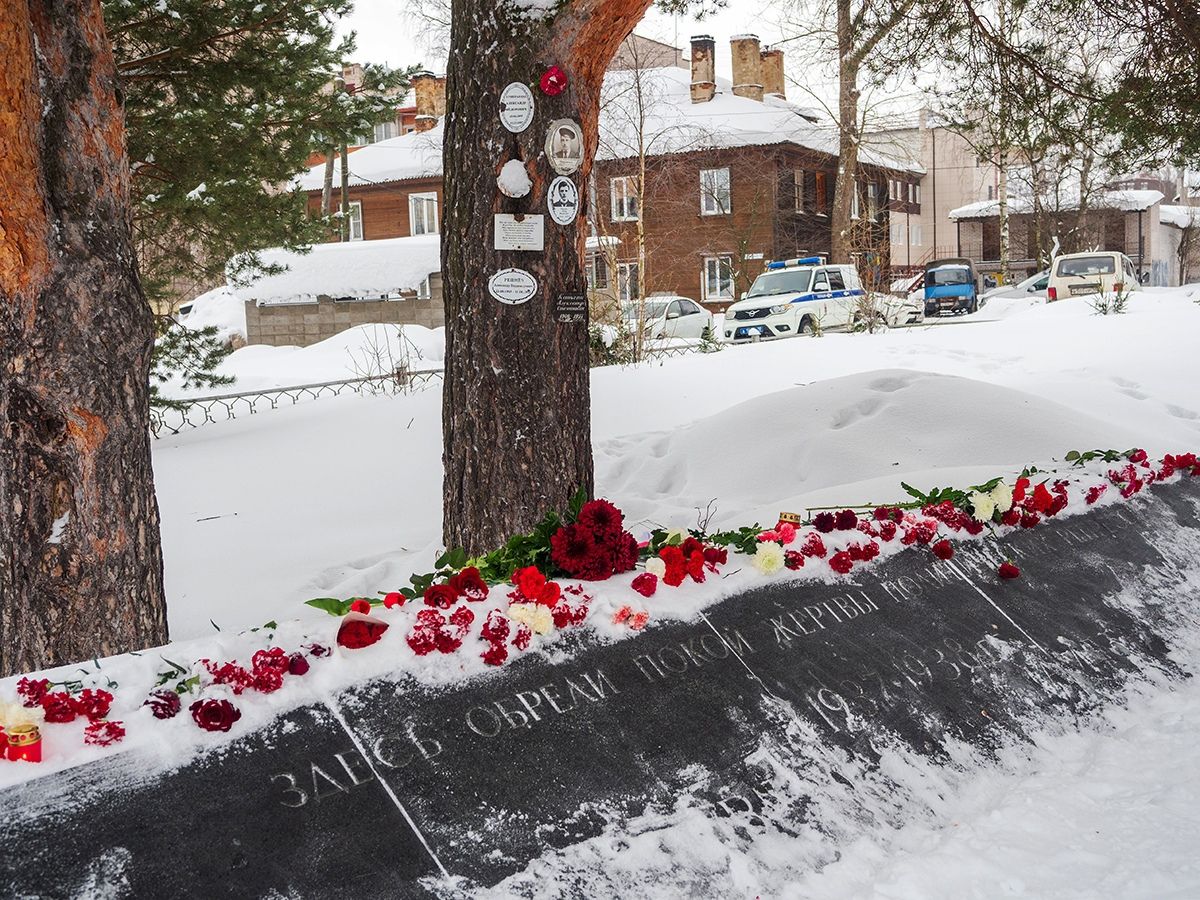 В Новосибирске полиция продолжает держать оцепление у памятника жертвам политических репрессий, к которому несли цветы, — накануне правоохранительные органы запретили приближаться к мемориалу, объяснив это сообщением о минировании.