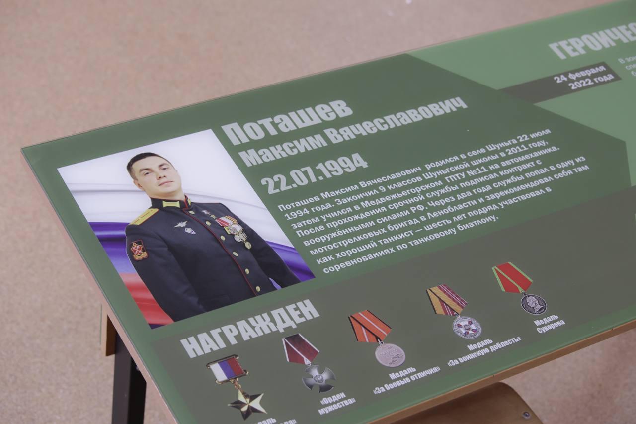 Сегодняшний день обязательно войдет в историю этой школы, всего Медвежьегорского района, нашей республики. Мы впервые в истории Карелии открываем «Парту Героя» человеку, который продолжает нести службу, нашему современнику Максиму Поташеву. Он совершил настоящий подвиг ради нас с вами, ради будущего нашей страны, — сказал Элиссан Шандалович.