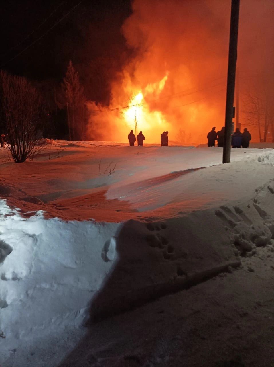Двухэтажный дом загорелся в субботу, 24 февраля, в девятом часу вечера. Пламя тушили пожарные из местного совхоза, позже к ним присоединились коллеги из Медвежьегорска и ближайших сел.