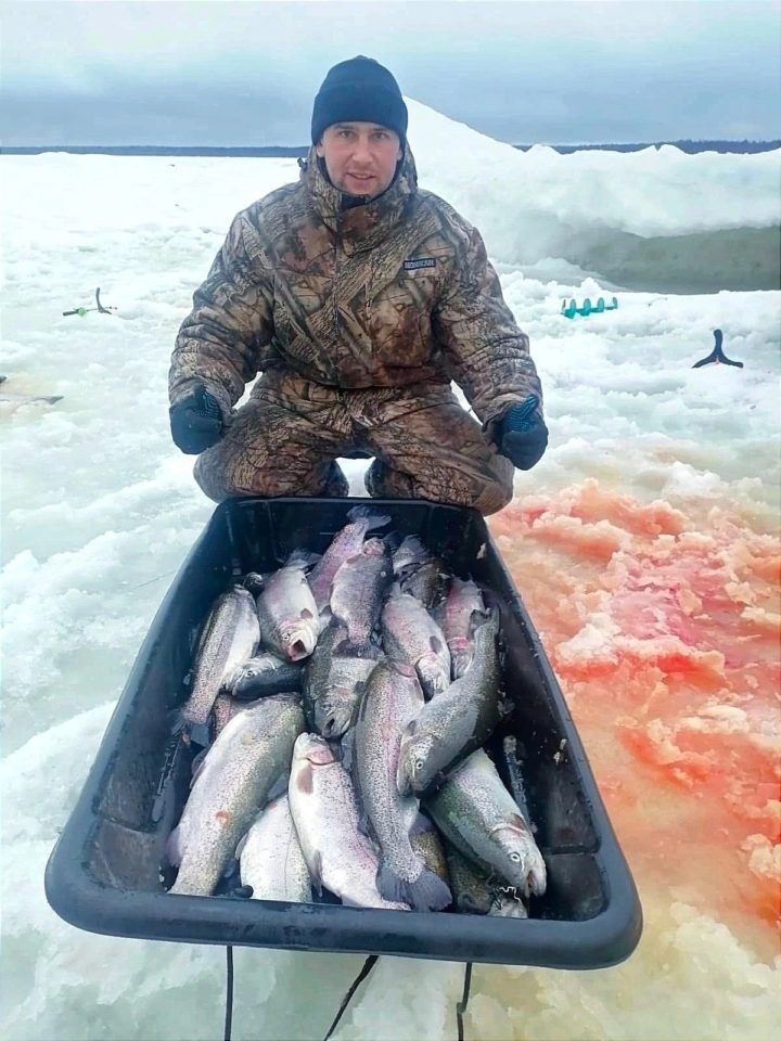 Напомним, форелевые садки рыбохозяйства на Ладоге порвала стихия в виде льда. Рыба «убежала» в озеро. В итоге у рыбаков из Петербурга, Карелии и более отдаленных территорий праздник. Местечко недалеко от поселка Черемухино в районе Приозерска – стало настоящей рыбацкой меккой. Сотни рыбаков, машин, палаток.