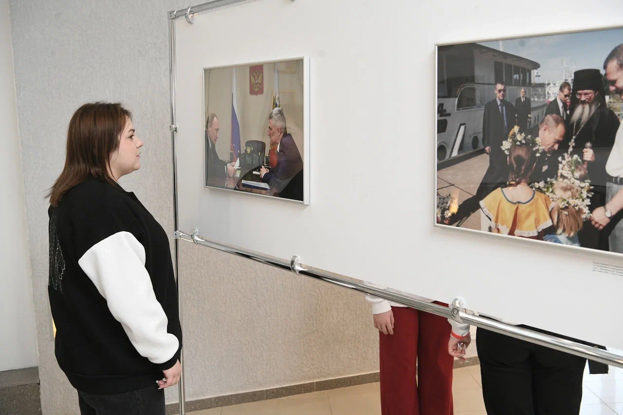 На экспозиции, которая открылась в Национальном театре, представлены фотографии, сделанные во время визитов Владимира Путина в республику. Среди них фото и публиковавшиеся в СМИ, и эксклюзивные.