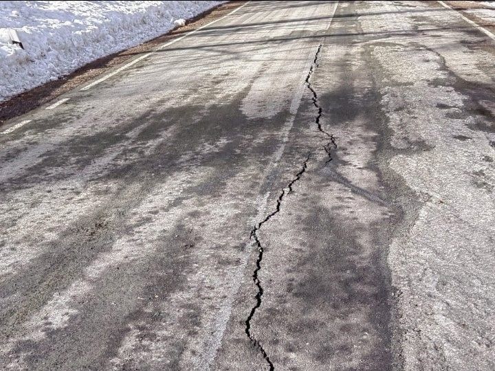 На проезжей части дороги обнаружены дефекты в виде трещин, образовавшиеся вследствие морозного пучения. Данные факты зафиксированы специалистами, при наступлении благоприятных условий будет поведён полный осмотр дорог, выявлены дефекты, а к лету все должно быть устранено.