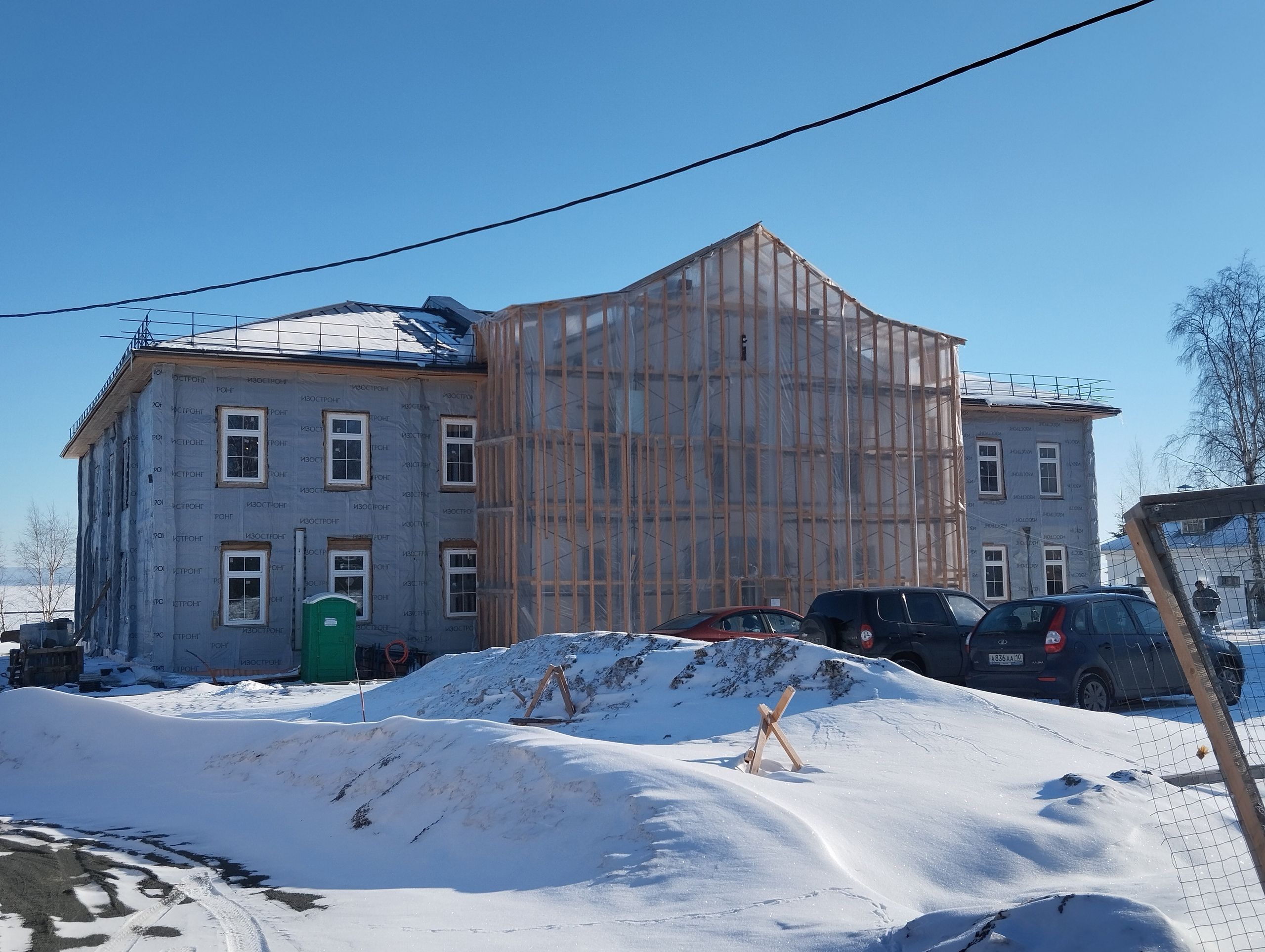 Работы на памятнике были начаты в 2022 году. К настоящему времени завершена реставрация деревянной части здания, на центральной части выполнена докомпоновка кирпичной кладки, восстановлена штукатурная отделка и декоративные элементы. Над всем зданием устроена новая крыша, установлены оконные и дверные заполнения, ведутся отделочные работы в интерьерах здания, — рассказали в Центре по госохране ОКН Карелии.