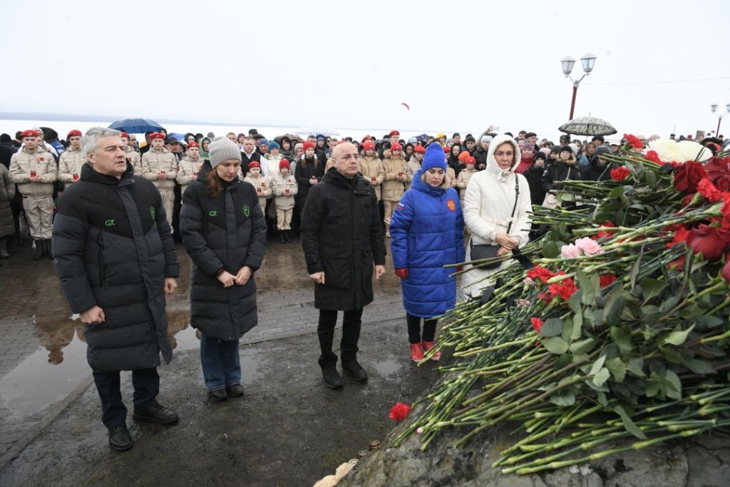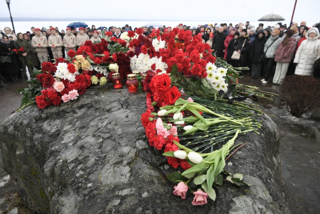 Жители республики возложили цветы к Камню скорби на Онежской набережной.
