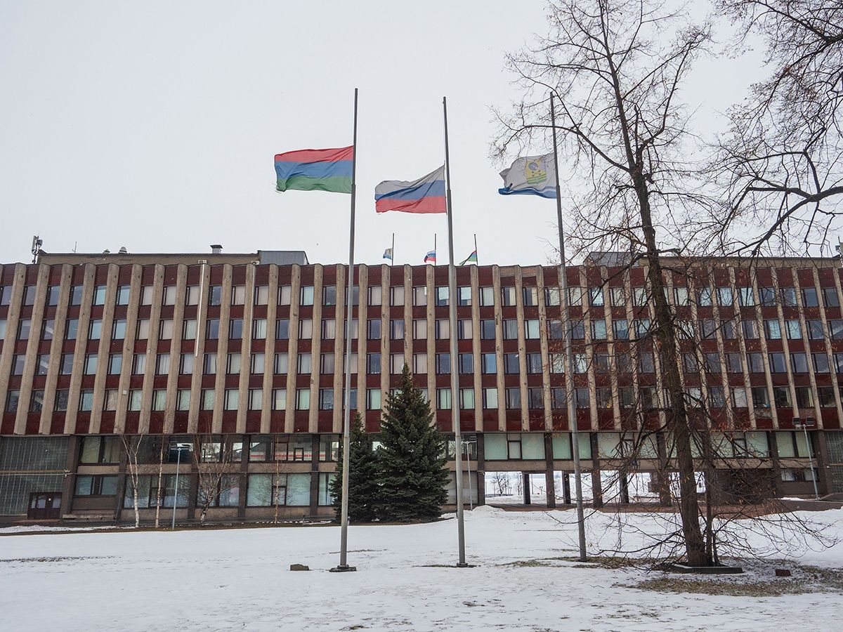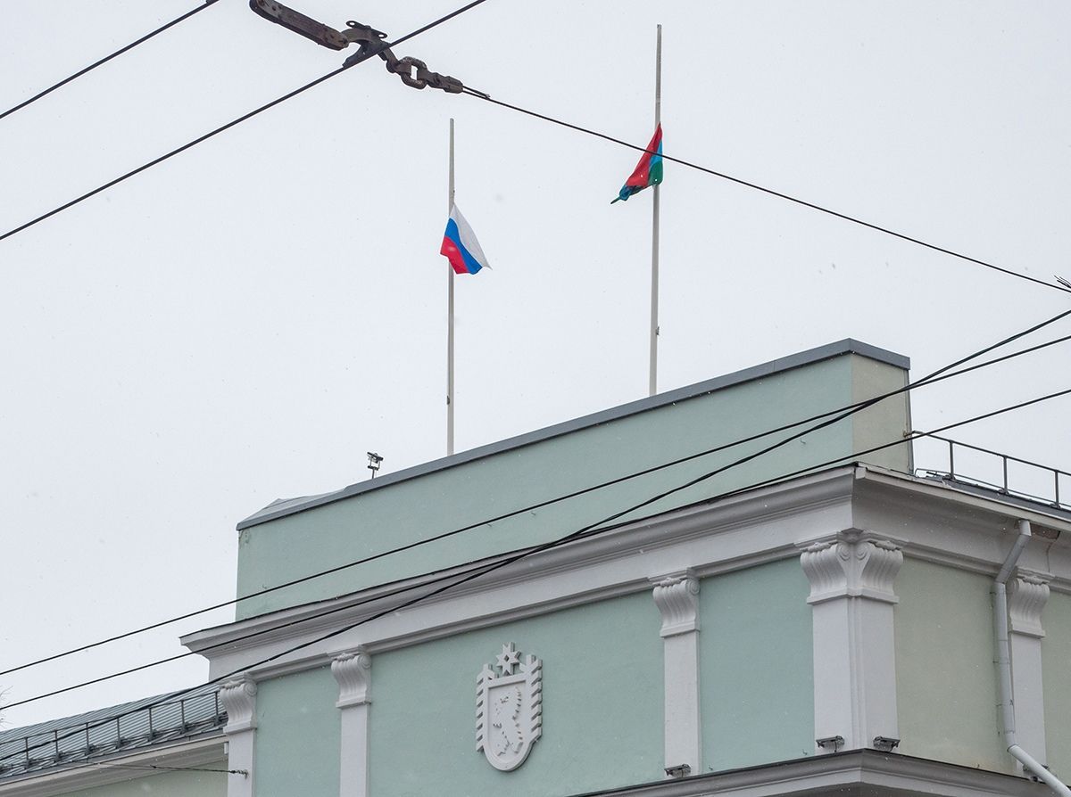 На зданиях правительства республики и городской мэрии в знак траура по погибшим приспущены флаги. Напомним, ранее на рекламных билбордах Петрозаводска зажглись свечи памяти.