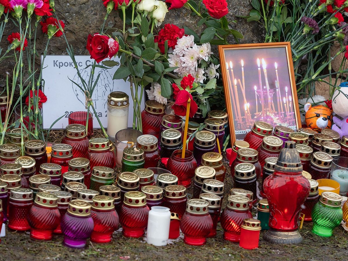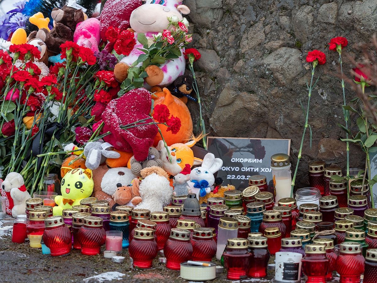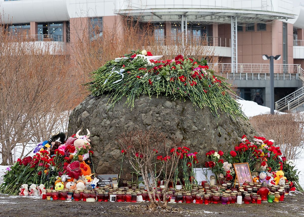 Сегодня, в день общенационального траура, поток людей к памятному месту не иссякает. Горожане приходят целыми семьями с детьми, чтобы выразить поддержку тем, кто потерял родных в трагедии в Подмосковье.