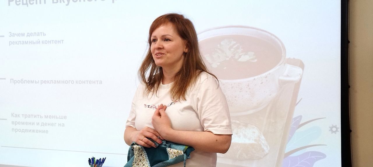 Надежда Чертенкова, предприниматель, оказывает юридические услуги. В 2023 году она, когда была в статусе безработной, составила бизнес-план и успешно его защитила. Алена и Надежда провели мастер-классы по размещению и продвижению рекламы в интернет-пространстве «Рецепт вкусного рекламного поста». Надежда рассказала о грамотной работе с чатами, о защите интеллектуальных прав и персональных данных. Участники первого мероприятия активно делились своими историями, обменивались контактами, строили совместные профессиональные планы на будущее.