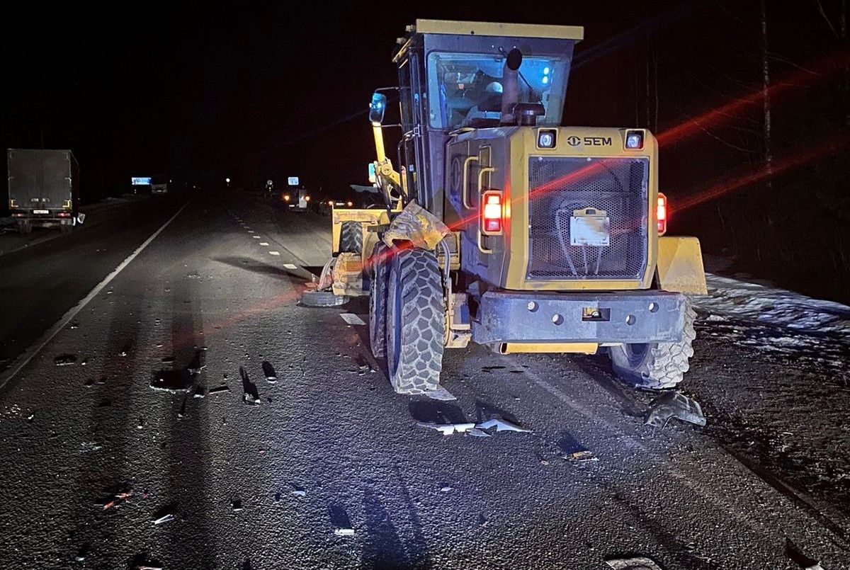 После удара легковой автомобиль налетел на автогрейдер, который находился на той же полосе движения.