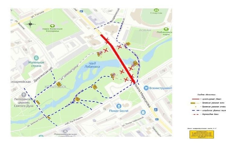 Для транспорта в качестве основного пути объезда предлагается использовать путепровод на Комсомольском проспекте.