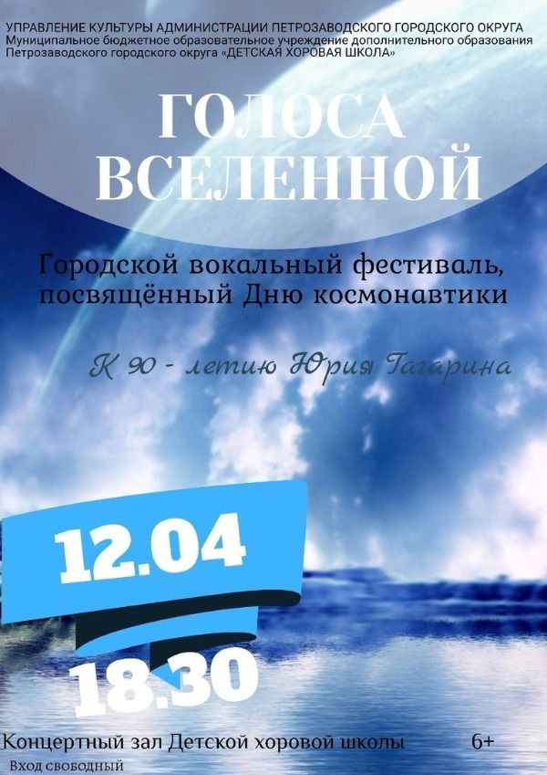 В День космонавтики, 12 апреля, в карельской столице пройдет городской фестиваль вокальной музыки «Голоса Вселенной» (6+). Об этом сообщили в администрации Петрозаводска.