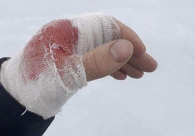 Первую медицинскую помощь я оказал себе сам. Снял перчатку, обработал перекисью рану, замотал руку бинтом. Пришёл домой, принял обезболивающее. После этого стало понятно, что надо как-то выбираться на материк, чтобы мне зашили рану. Один я бы с этим не справился.