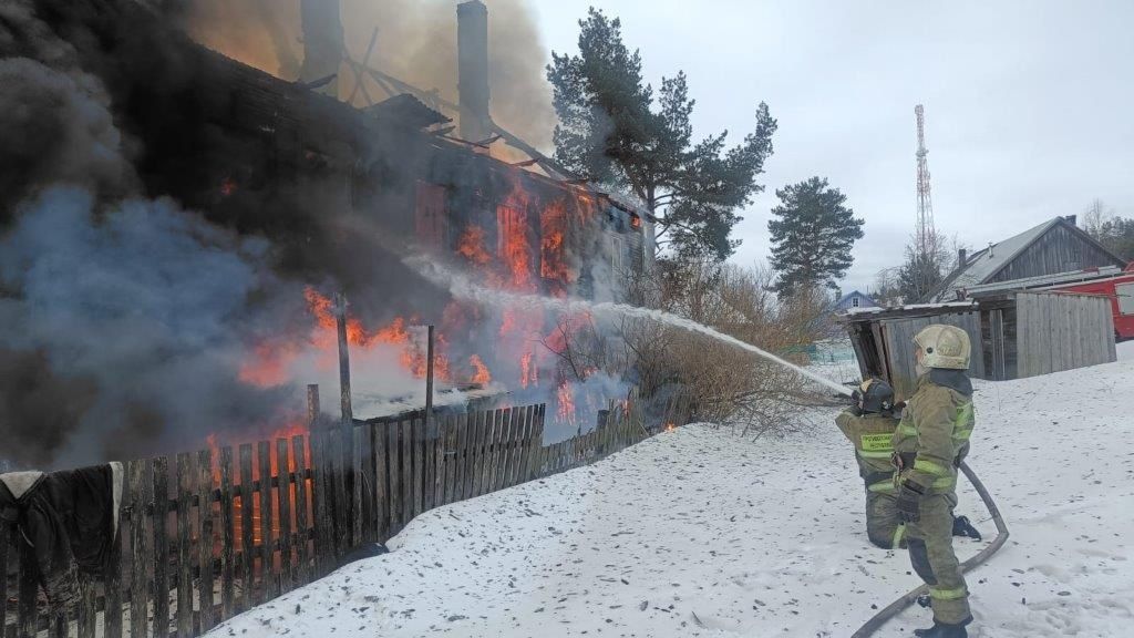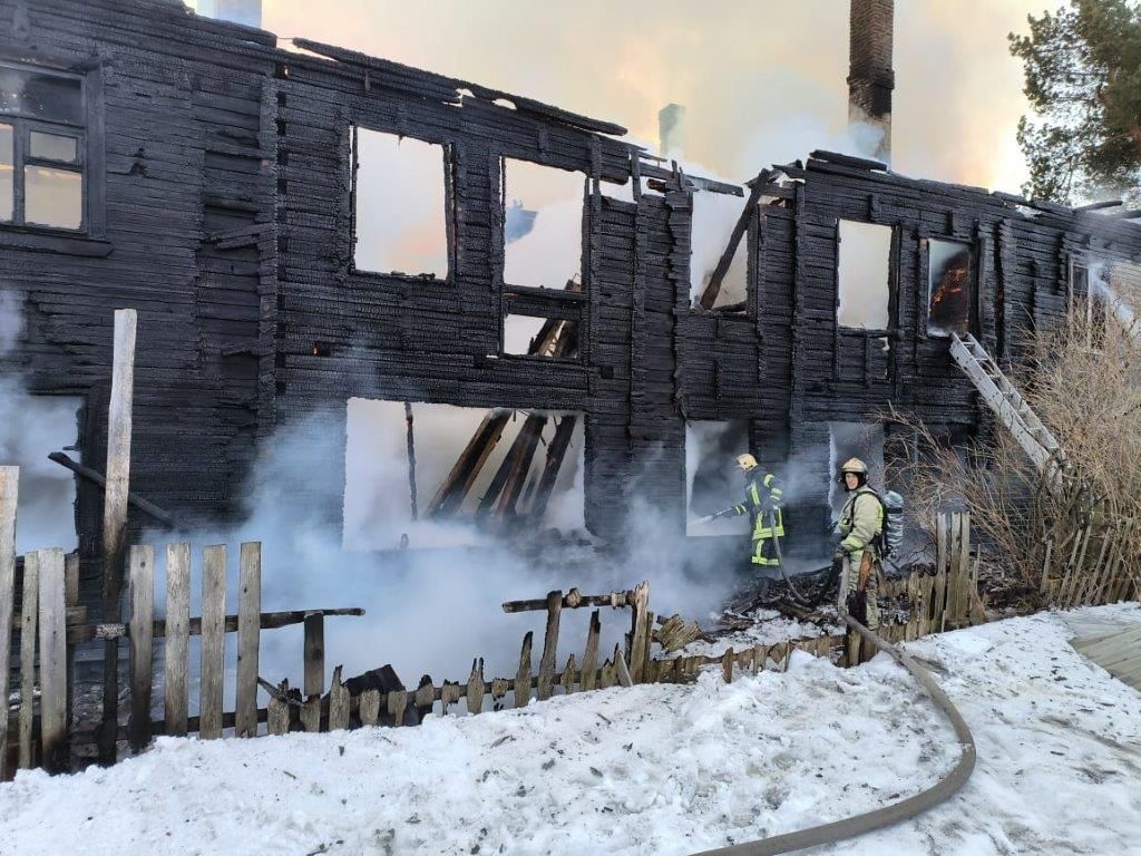 Двухэтажный восьмиквартирный дом на станции Шуйская в Карелии почти полностью уничтожен огнем в результате пожара.