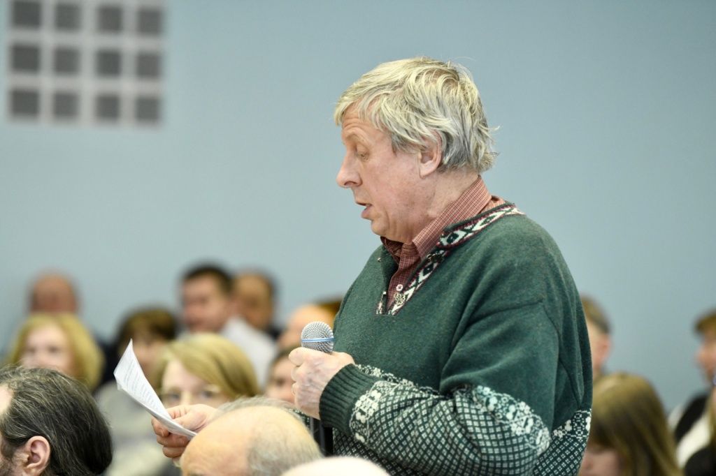 На встрече глава Карелии ответил на вопросы жителей, которые касались федерального законодательства по вывозу мусора, благоустройства дворов, реабилитации детей-инвалидов, предоставления земельных участков многодетным семьям и других тем.
