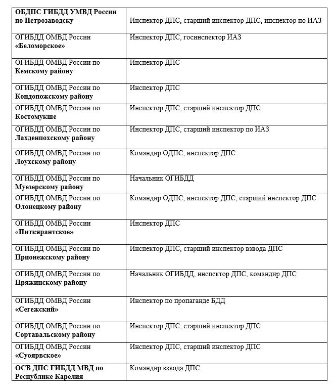 Кроме рядовых инспекторов требуется начальник ОГИБДД Прионежского района и командир отдельного специализированного взвода ДПС Карелии.