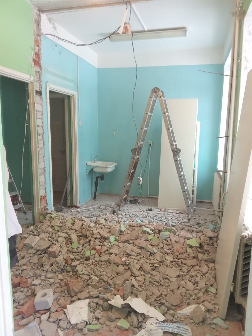 В здании ФАПа в Рауталахти заменят двери и окна, покрасят потолки и стены, перепланируют помещения для более эффективного использования пространства. Сейчас рабочие приступили к разбору конструкции внутри здания.