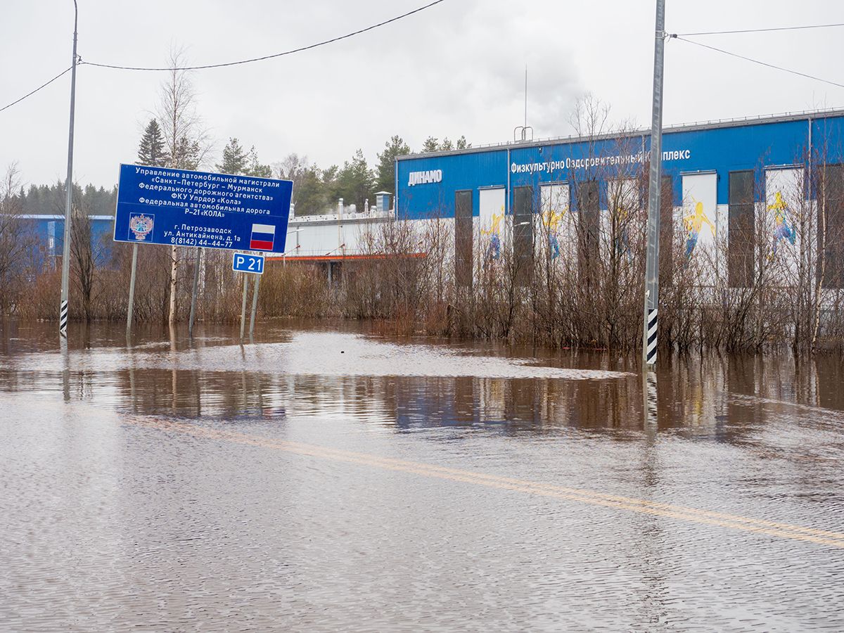 Фотограф Игорь Подгорный снял затопленную автодорогу «Кола – подъезд к Петрозаводску».