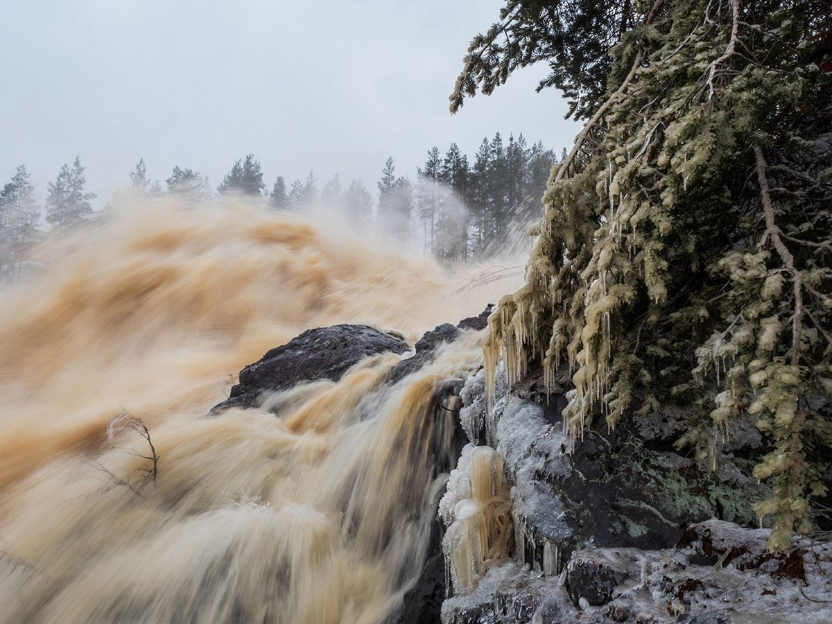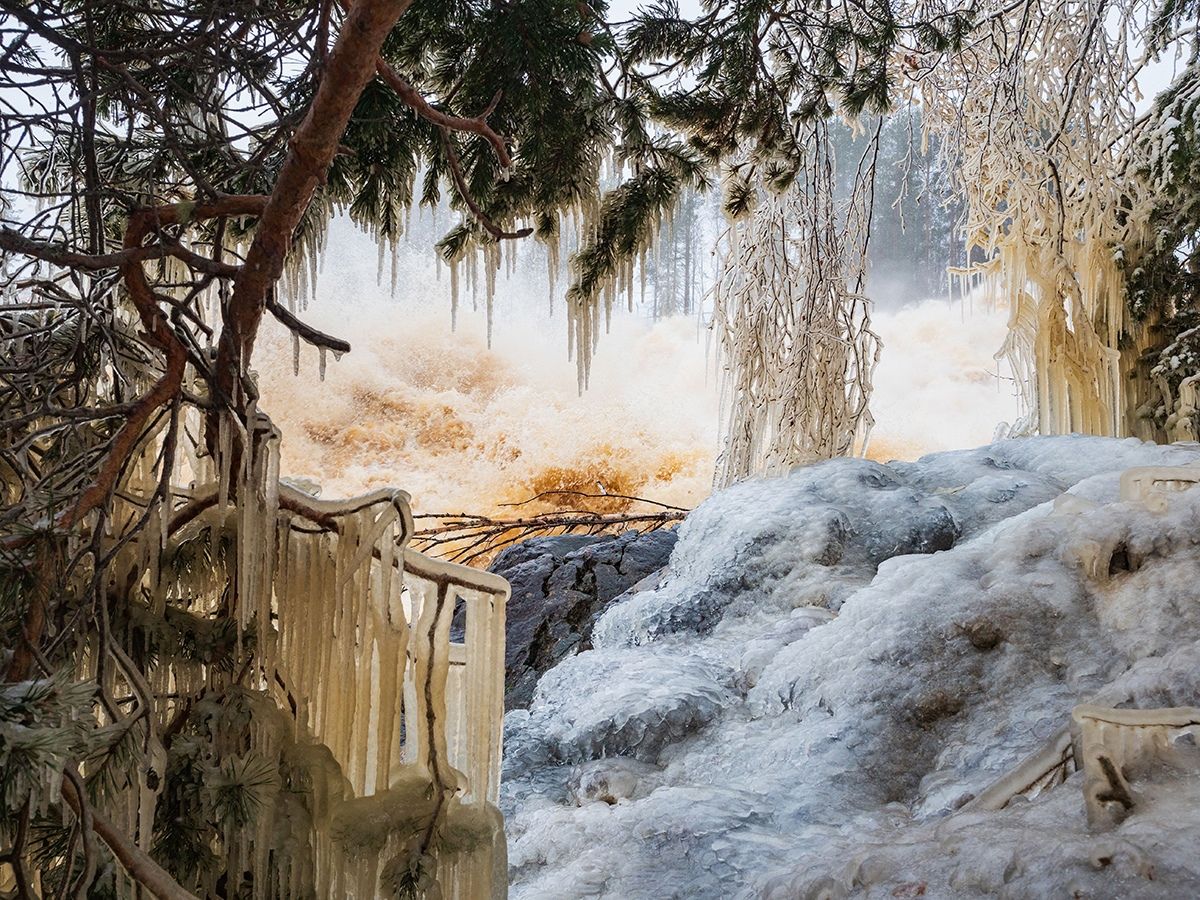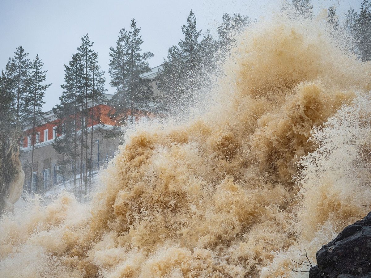 Фотограф Игорь Подгорный снял рукотворный водопад Гирвас, который каждый год оживает весной в Карелии во время сброса воды с Пальеозёрской ГЭС.