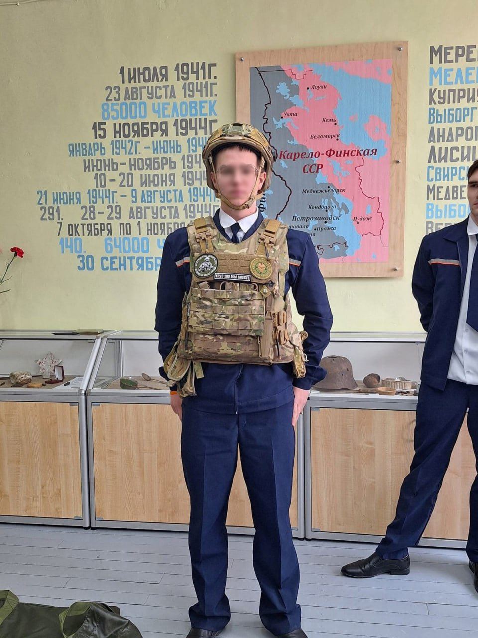Пост был посвящен встрече в музее воинской славы Пушкинской школы Костомукши кадетов-девятиклассников с участников СВО. Участник специальной военной операции принес с собой комплект воинской амуниции, который примерили школьники. Все бы ничего, но на форме и бронежилетах были шевроны «Груз 200 мы вместе», «Мой гроб еще шумит в лесу, он дерево, он нянчит гнезда». Кроме того, красовались шевроны оскандалившегося ЧВК «Вагнер».