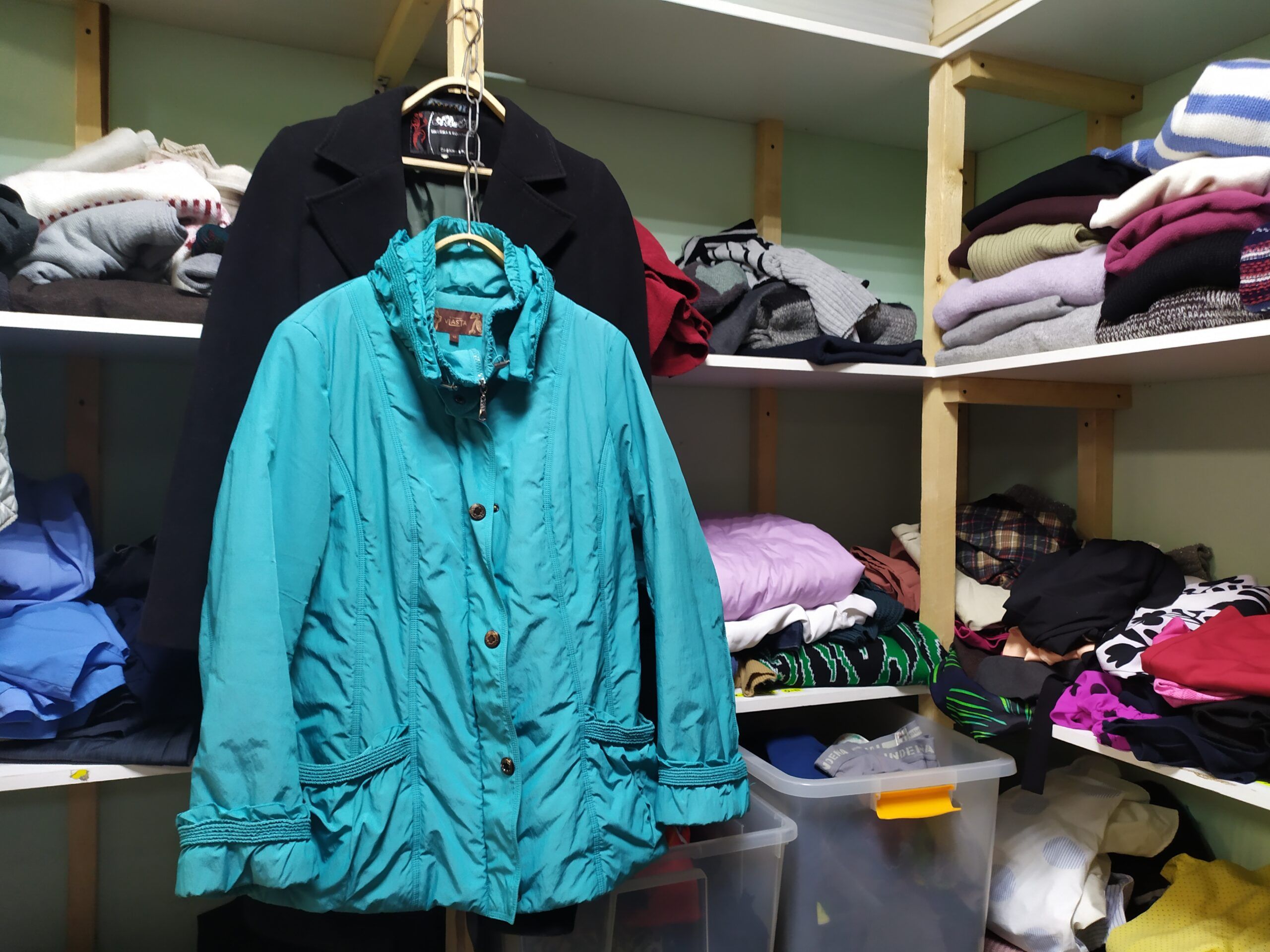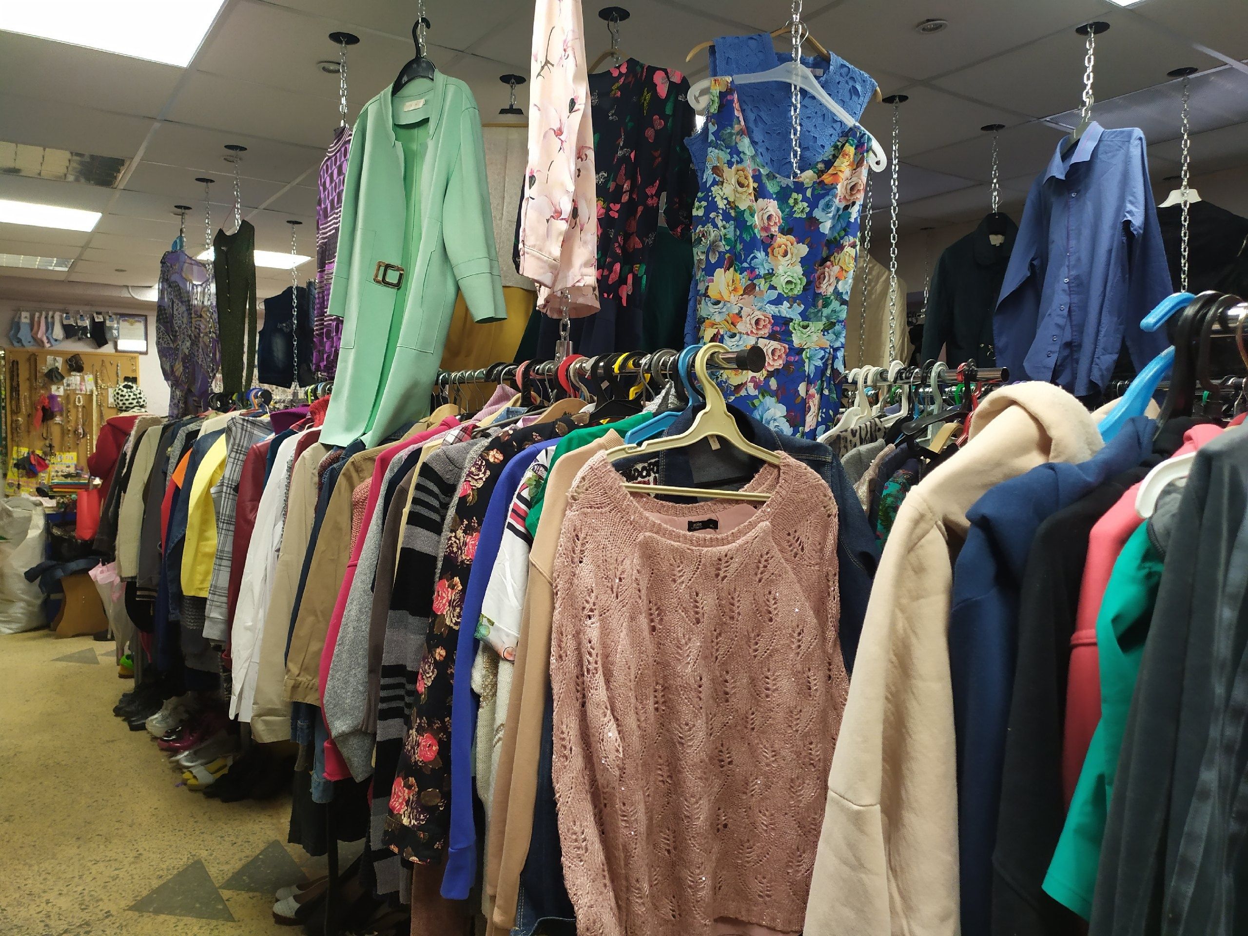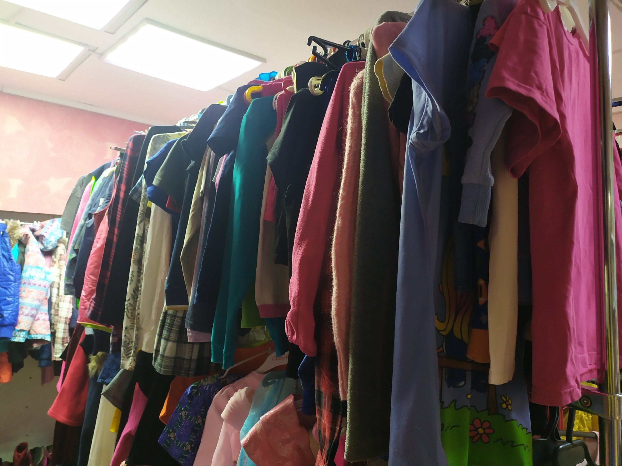 На входе большими буквами написано «Благотворительный магазин». Это первая точка фонда, где помимо сортировки идет выдача вещей нуждающимся.