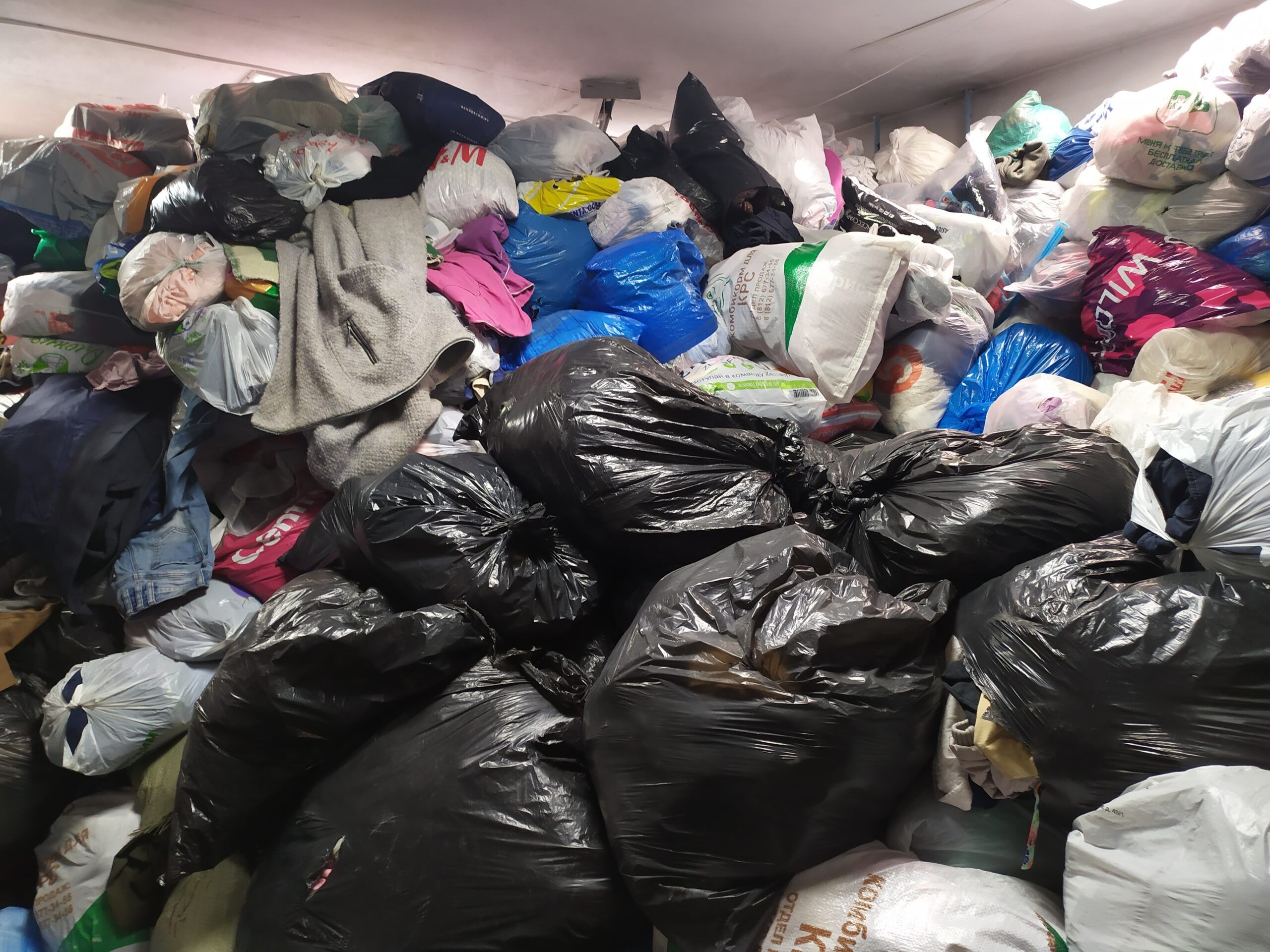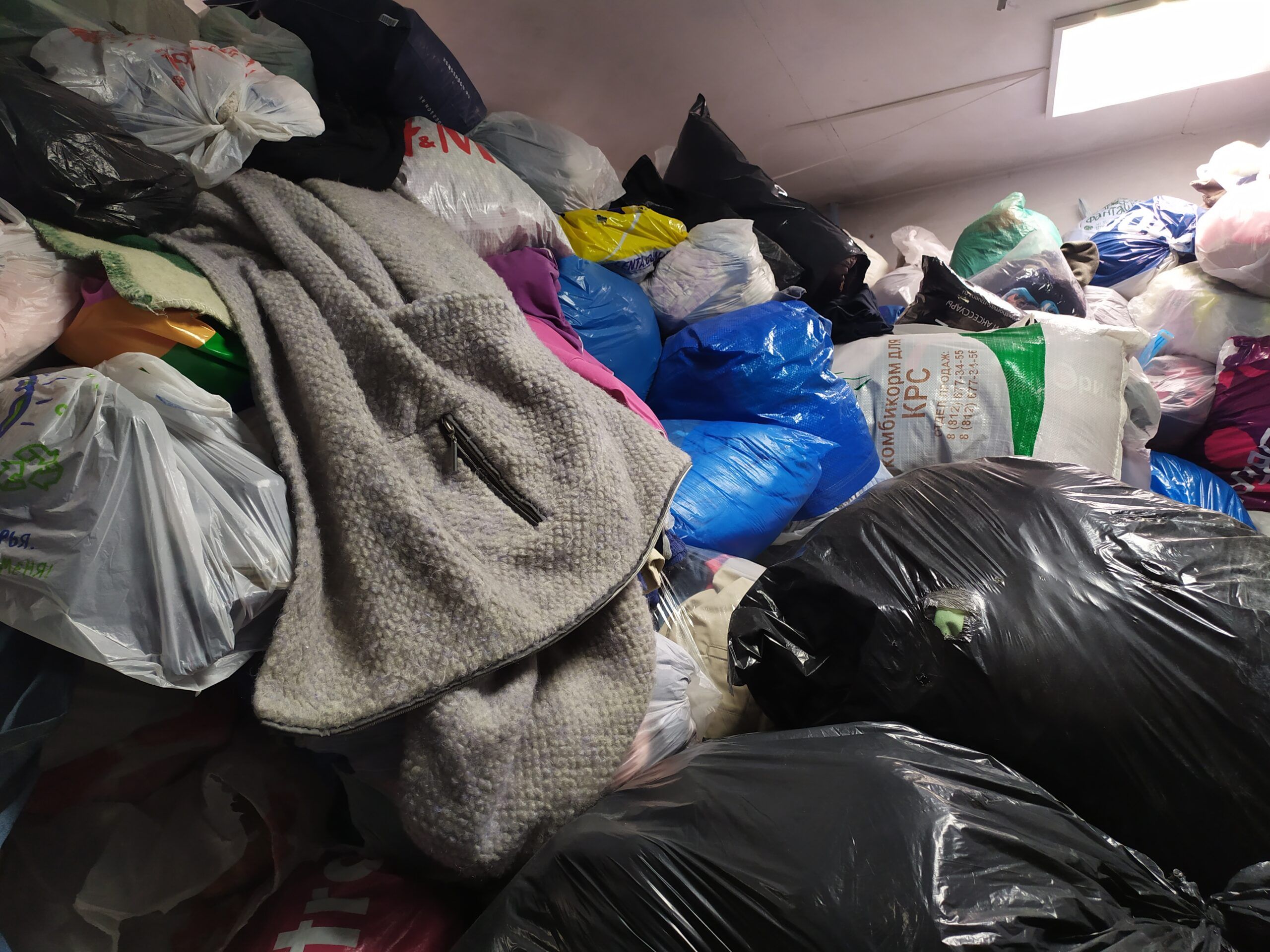 Волонтеры в день перебирают по 10—20 мешков вещей