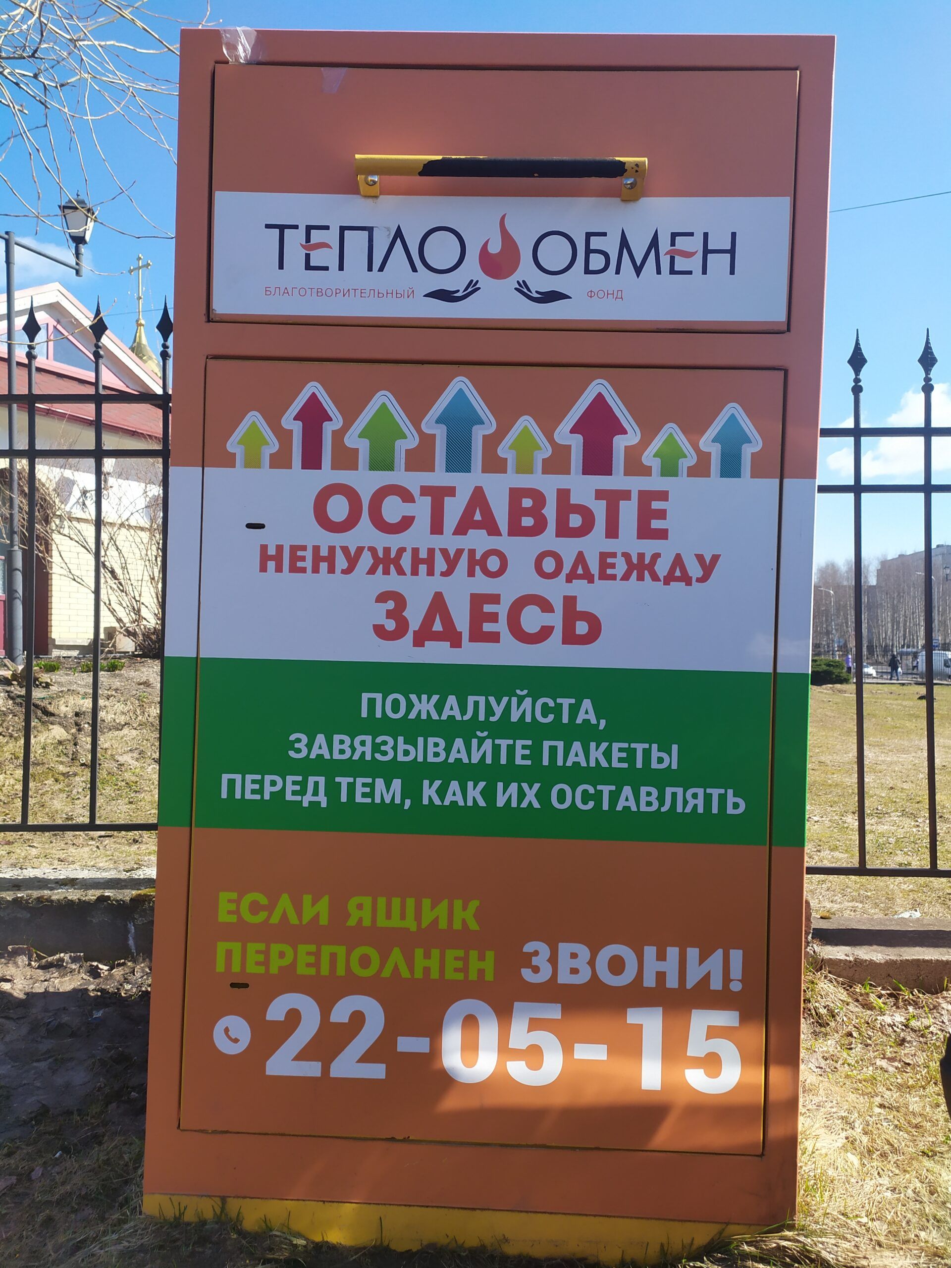 «Теплообмен» принимает вещи в своих магазинах, сдать их можно и в контейнеры. Яркие «теплобоксы» расставлены в разных частях Петрозаводска, в том числе в крупных торговых центрах, у храмов.