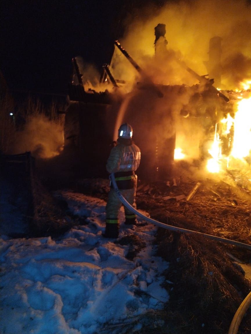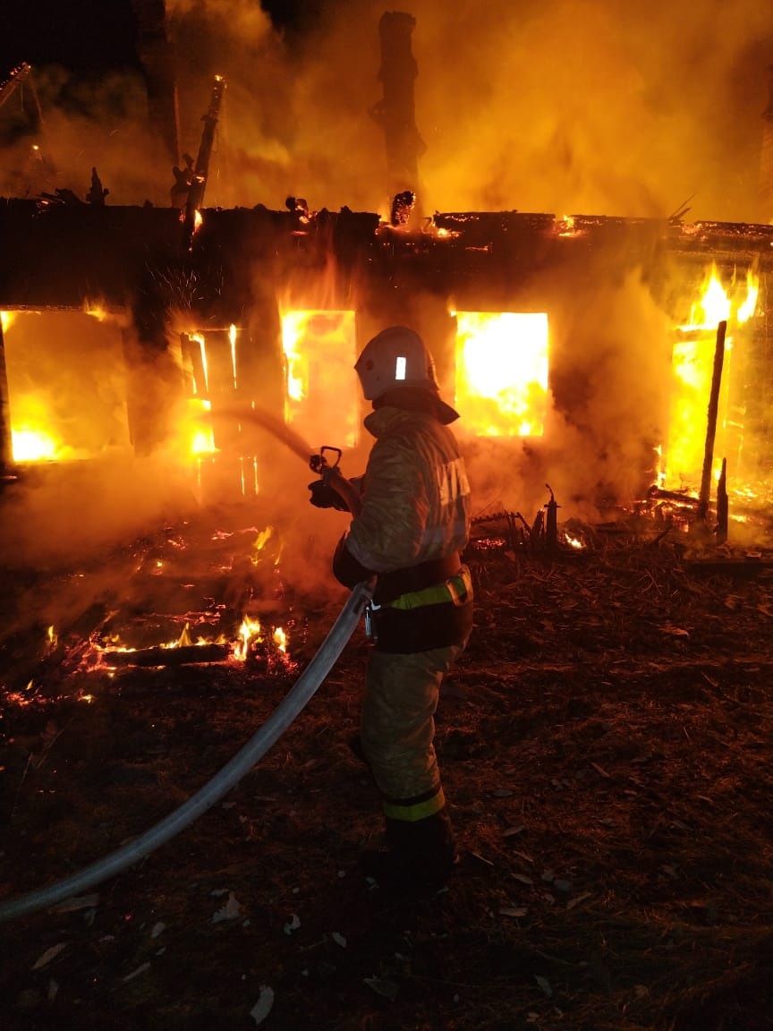 Информация о происшествии поступила диспетчеру в 01:35. Горел многоквартирный расселенный дом на улице Железнодорожной. На вызов прибыли 10 специалистов из двух пожарных частей, были задействованы две автоцистерны.