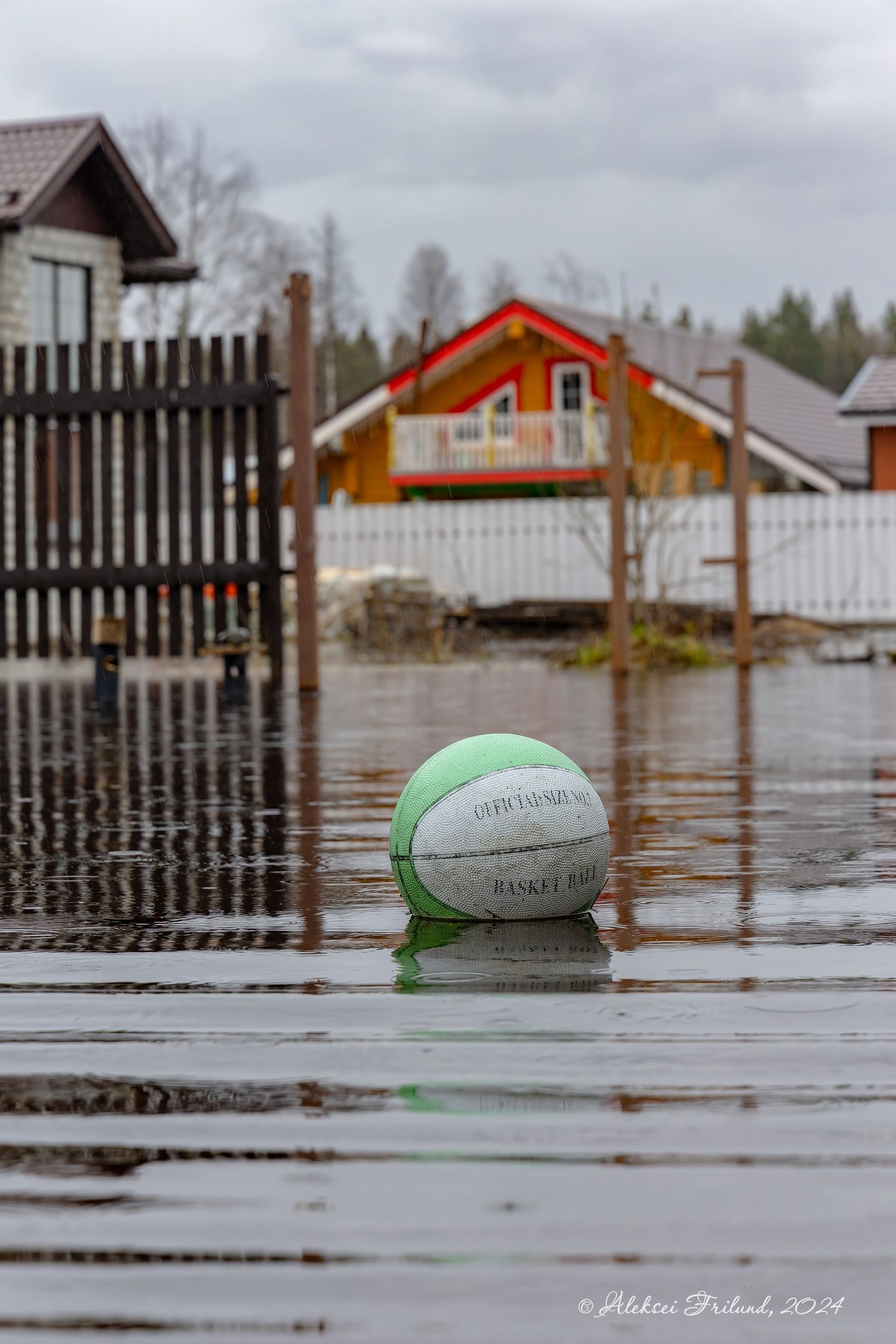 Особенно удивил фотографа знак о запрете рыбалки посреди половодья. А еще одиноко плавающий мяч, как символ чего-то брошенного и забытого, независимо от того, что кто-то «держит ситуацию на контроле».