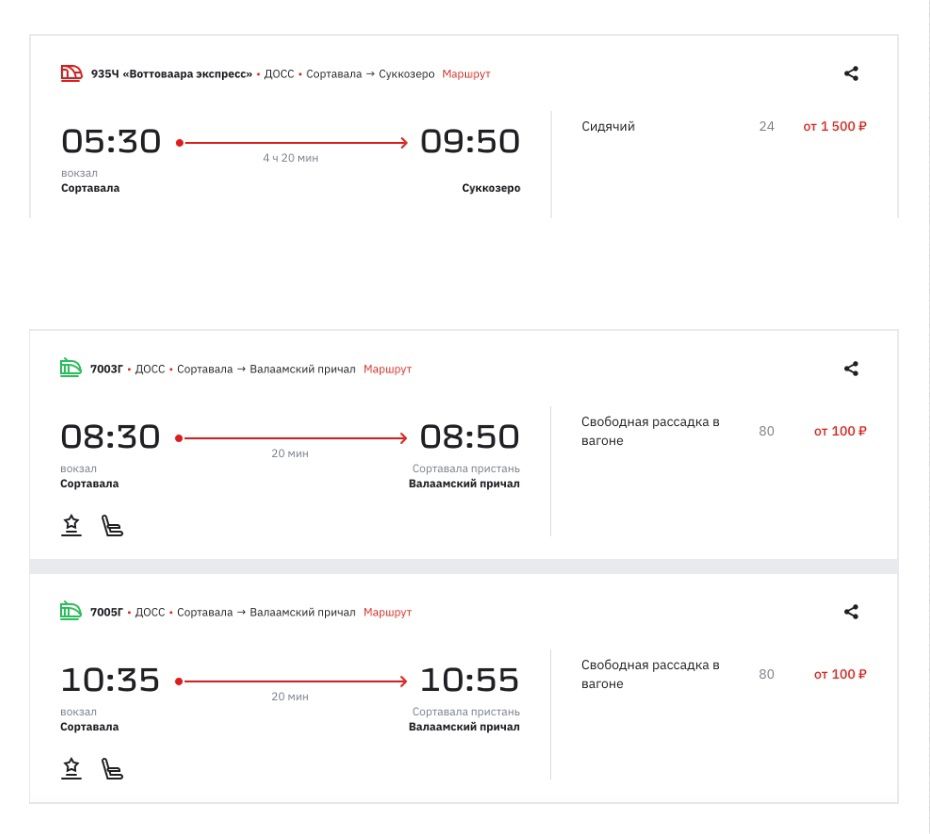 Второй поезд – «Воттоваара экспресс» следует по маршруту Сортавала — Гимольская — Суккозеро. На него цена составляет 1500 рублей.