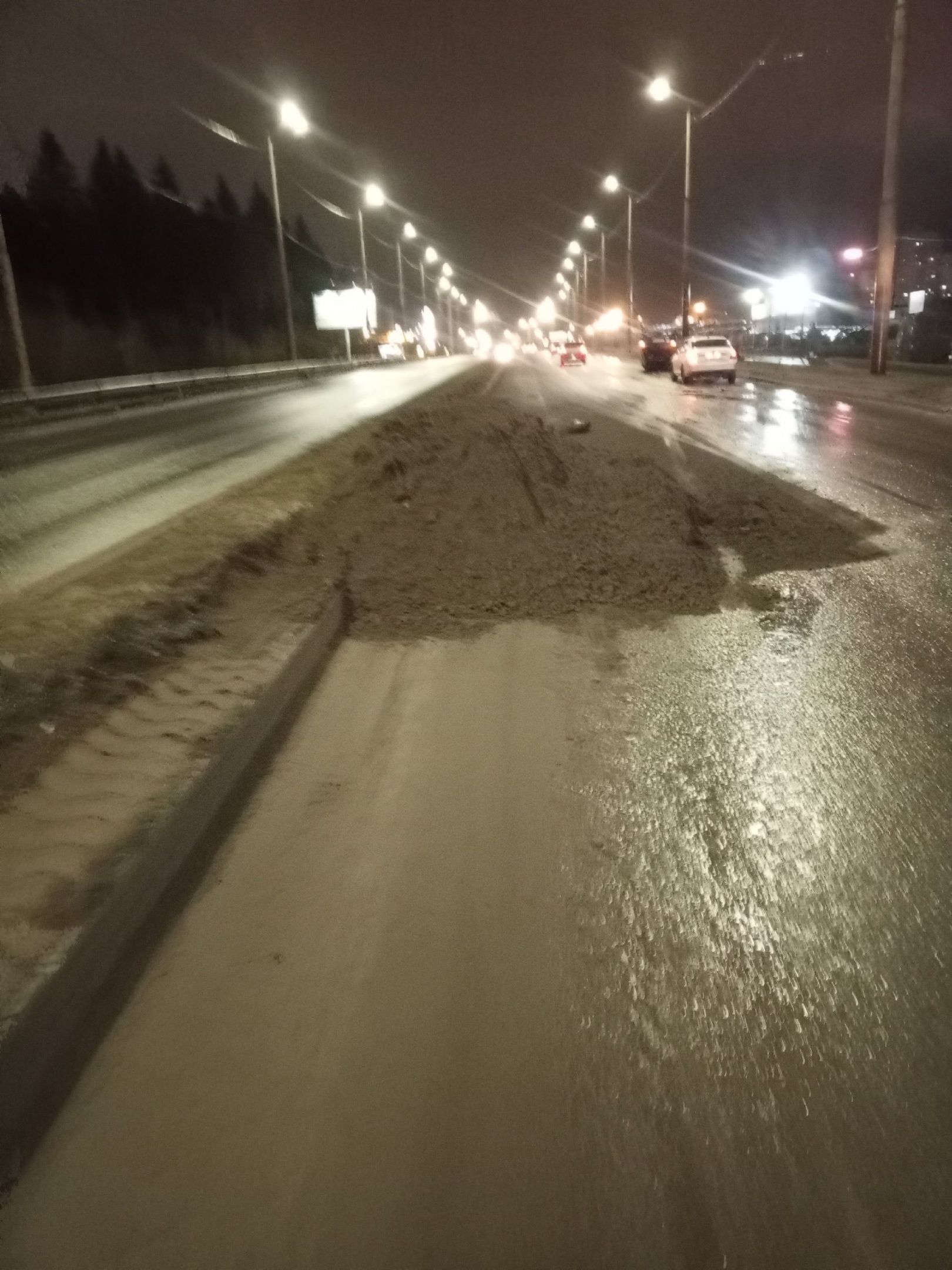 Дорожники оставили песок на проезжей части.