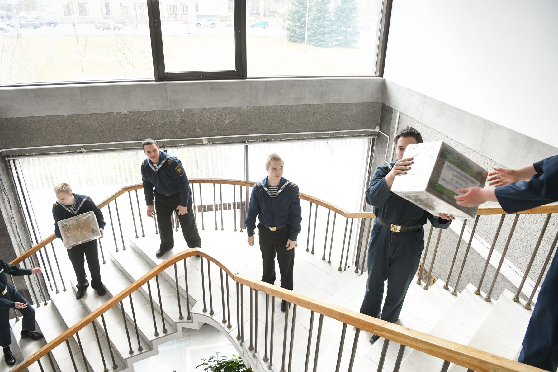 Сотрудники администрации Петрозаводского городского округа принимали, сортировали и упаковывали подарки, а курсанты городского филиала «Государственного университета морского и речного флота имени адмирала С.О.Макарова» помогли с погрузкой коробок.