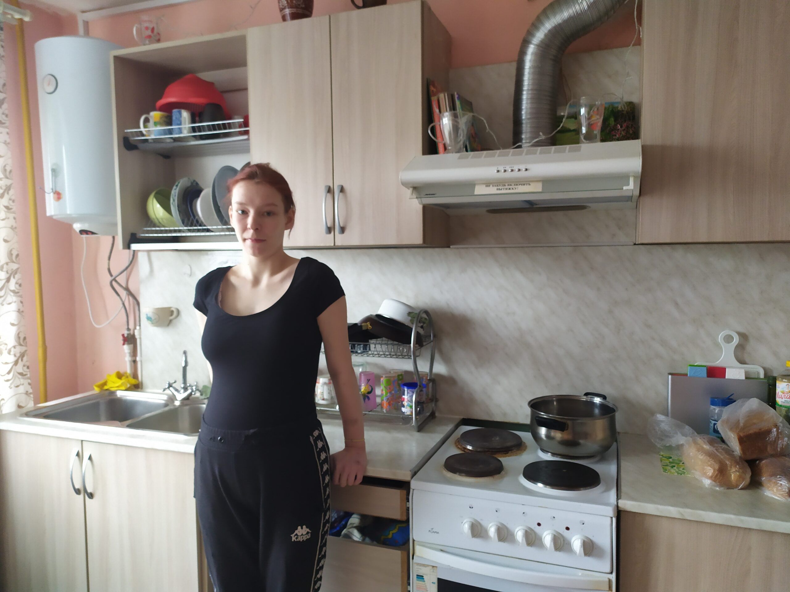 Виктория встретила нас на пороге. Пока ждала, мыла пол в ванной «мама-дома». Говорит, скучно сидеть без дела. Внешне бодрая, уверенная. Тут же предлагает чай, как гостеприимная хозяйка, и рассказывает свою историю. К слову, ни разу не заплачет, хотя видно, что ком застревает в горле не раз. Крепится, сглатывает и продолжает говорить.