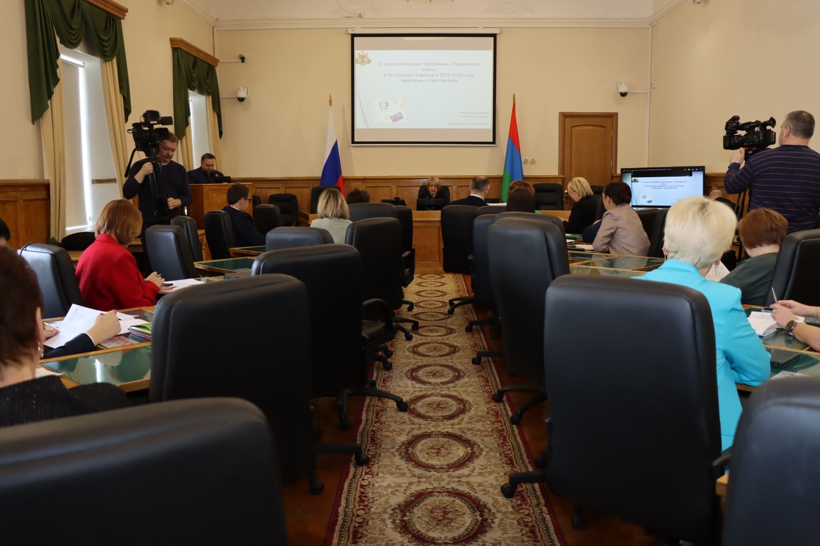 В чем преимущество Пушкинской карты? Это прежде всего бесплатный культурный досуг. Можно сходить всем классом, сопровождающий также проходит бесплатно. Это возможность обогатить образовательный процесс, в том числе это источник дополнительного дохода для семейного бюджета. Для учреждений культуры это возможность привлечь в залы молодежь за счет федерального бюджета, — рассказал на комитете основной докладчик министр культуры Калерии Алексей Лесонен.