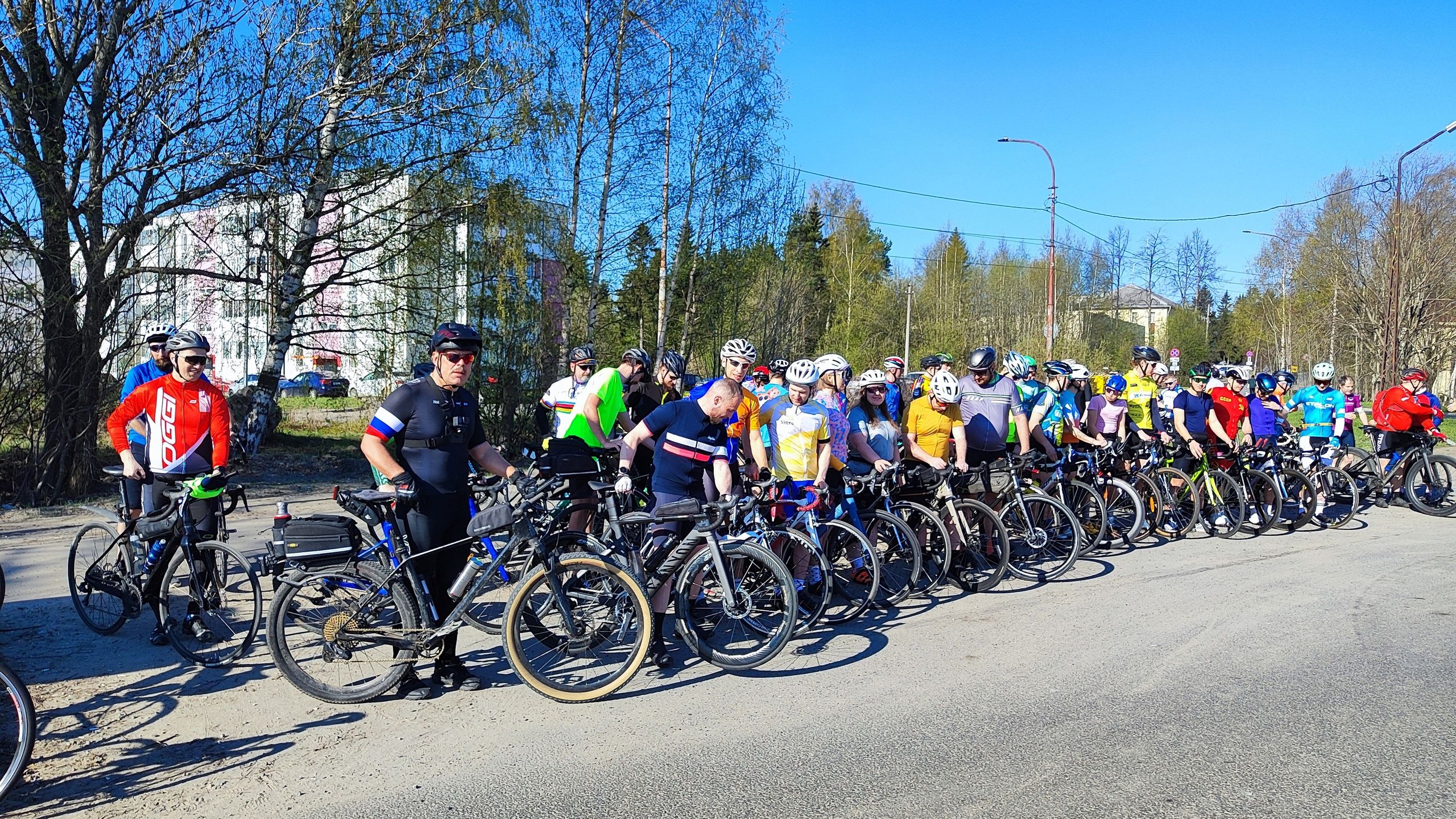 На старт вышло более 55 человек. География участников – Карелия, Северодвинск, Ленобласть, Санкт-Петербург. Большая часть – это любители. Кто-то еще ни разу 200 км не ездил. Таких с десяток наберется, рассказал нашему порталу один из организаторов гонки, карельский велосипедист Владимир Басунков. По его словам, есть несколько спортсменов, в том числе опытных триатлонистов. Для них это как бодрая темповая тренировка.