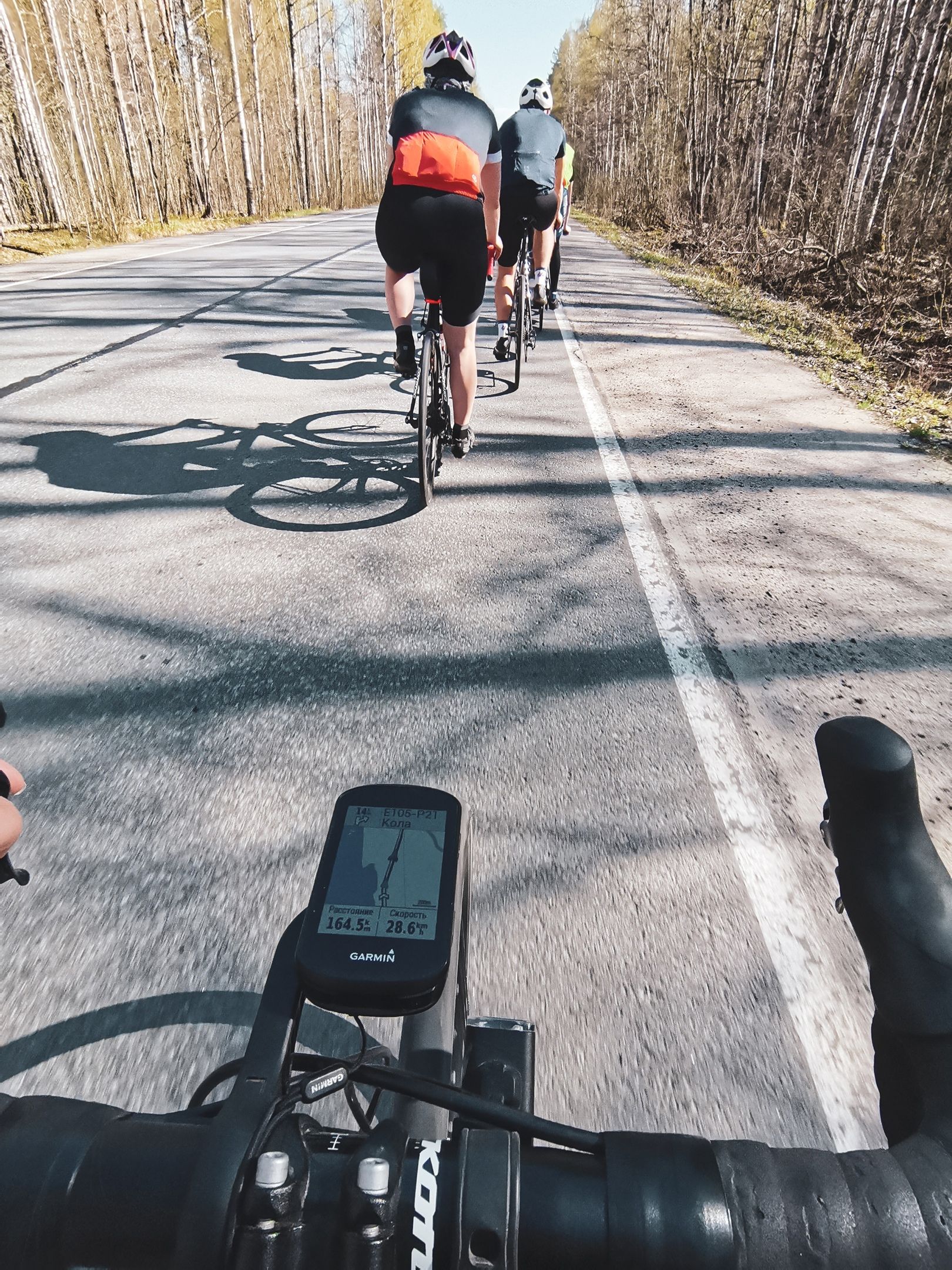 Солнечная тёплая погода, оживающая природа, хорошая компания. В общем, безмятежность. Если бы не ветер. Первую половину пути южный ветер не ощущался — просто казалось, что физуха в отличном состоянии, велосипед бежит и вообще едется отлично. Когда направление поменялось на обратное (особенно участок по трассе «Кола), тут всё и прояснилось: из-за ветра усилий приходится прикладывать значительно больше, а средняя скорость всё-равно предательски падала. Зачем это нужно? Потому что могу и приятно доказать себе, что могу, — написал один из участников Павел Хумала.