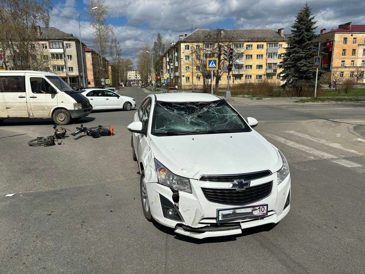 О третьем ДТП мы писали ранее. В Сегеже около 12:35 дня столкнулись легковой автомобиль и электровелосипед. Водитель Chevrolet Cruze при выполнении левого поворота не уступила дорогу водителю электровелосипеда, который двигался навстречу в прямом направлении. Травмирован 47-летний велосипедист, ему назначено амбулаторное лечение. Момент аварии попал на видео – мужчина подлетел в воздух, его двухколесный транспорт развалился на обломки.