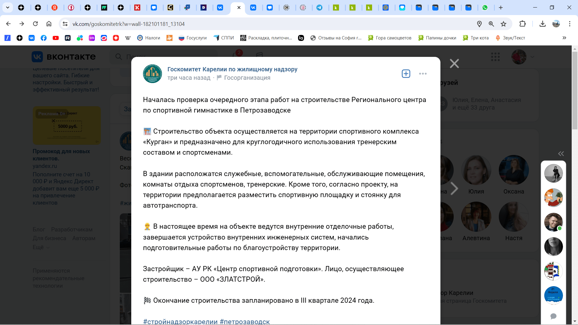 О строительстве Центра спортивной подготовки на Кургане сегодня сообщил на своей странице Госкомитет по жилищному надзору Карелии. В ведомстве заявили, что здание будет построено в третьем квартале этого года.