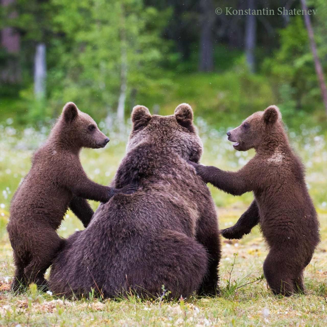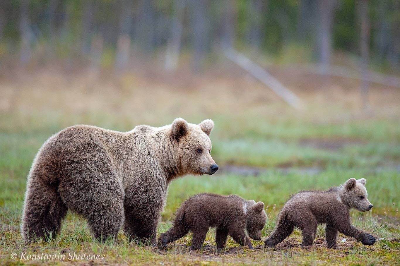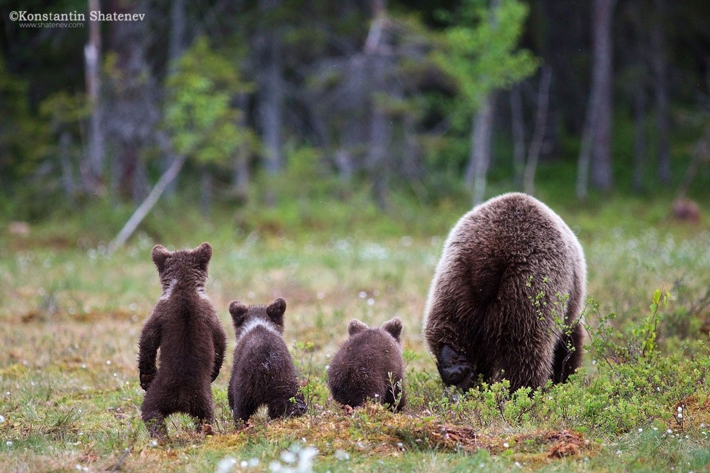 Маленькие медвежата-сеголетки ещё очень хрупки и уязвимы, и их лучше скрывать от лишних глаз. Ведь защитная реакция и основы оборонительного поведения появятся у малышей только в возрасте четырёх месяцев. До этого очаровательные создания могут без страха подойти к кому угодно, в том числе и к человеку, тем самым спровоцировав маму-медведицу на нападение. Встреча в лесу семьи с такими маленькими медвежатами одна из самых опасных возможных ситуаций! Медведица будет атаковать без предупреждения! — говорит Константин.