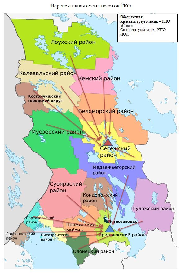 КПО «Юг» в Прионежском районе мощностью 180 тыс. тонн в год будет обслуживать южные и центральные районы республики. Поэтапный ввод объекта в эксплуатацию планируется с 2025 года. КПО «Север» в Сегежском округе мощностью 40 тыс. тонн в год будет обслуживать северные районы и округа. Он будет построен рядом с существующим мусорным полигоном, который после ввода в эксплуатацию объекта в 2027 году будет рекультивирован.