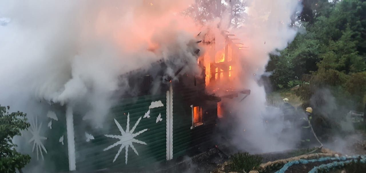 Информация о происшествии поступила в 21:39. Горел дом по адресу улица Центральная, 41. На место был направлен первый караул, отдельный пост 38 пожарной части по охране поселка Хелюля. Позже к ним присоединилась еще одна автоцистерна с мотопомпой.