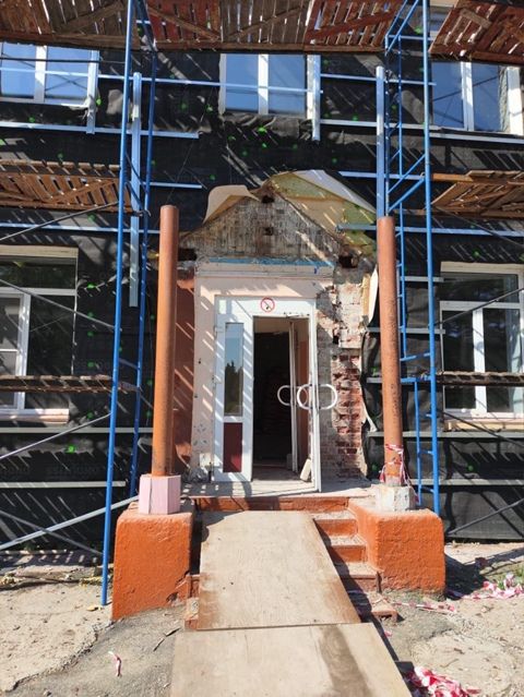 В настоящее время полностью выполнены демонтажные работы, установлены кронштейны и утеплен фасад, рабочие штукатурят стены. Завершить капитальный ремонт планируем в 2024 году.