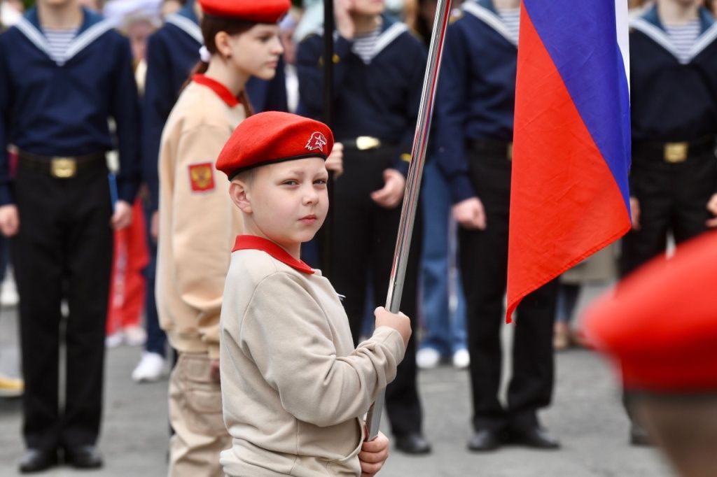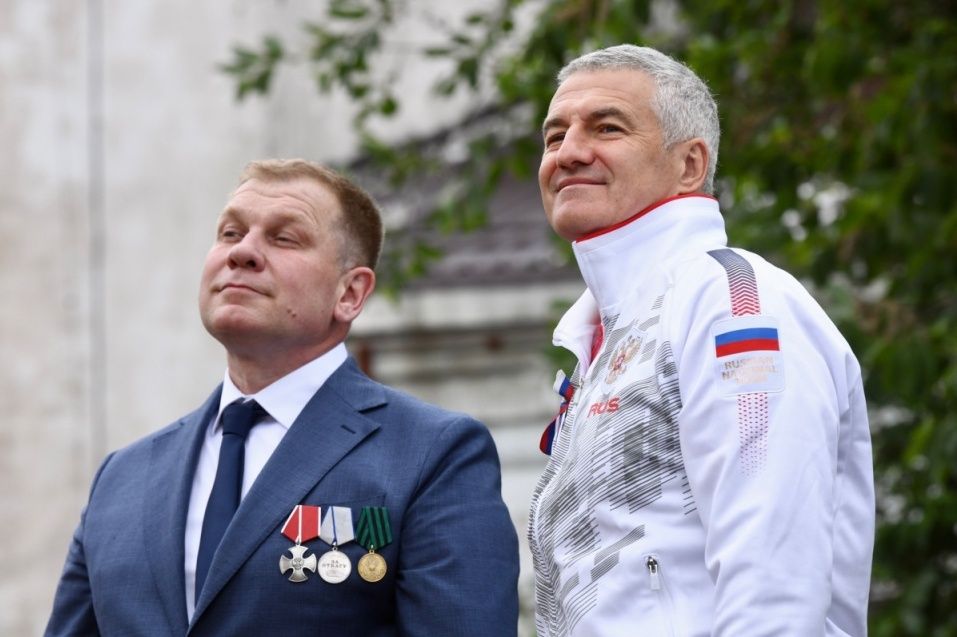 Под торжественные аккорды гимна России глава Карелии Артур Парфенчиков вместе с ветераном специальной военной операции и юнармейцами поднял в небо российский триколор.
