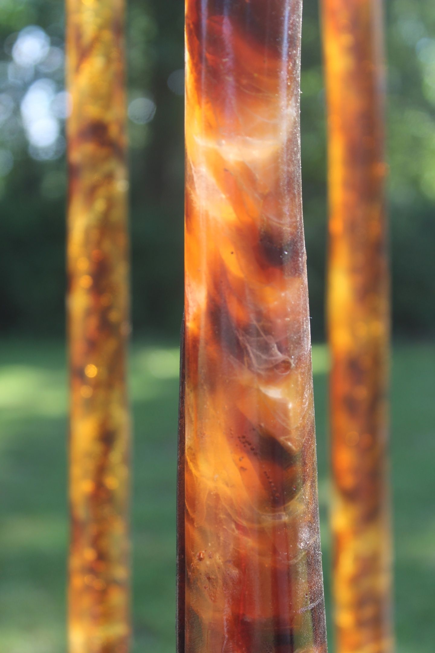 Самая уникальная технология в нашем творчестве — это соединение металла и стекла. В этом случае стекло и металл становятся абсолютно равными материалами, металл не является подставкой для стекла и наоборот. Взаимоотношение разных по структуре материалов — это и взаимоотношение двух людей, пытающихся найти отражение природных форм в материале, передающих свои наблюдения в работах. Так плавно, живописные и световые моменты вписываются в грубость и тяжесть металла и соединяются с ним. Наши арт-объекты наполнены звуком, воплощенном в материале, бликами солнечного света, играющего переливами в формах стекла, увиденных в реальных природных мотивах и воплощенных с помощью декоративных приемов, — рассказывают художники.