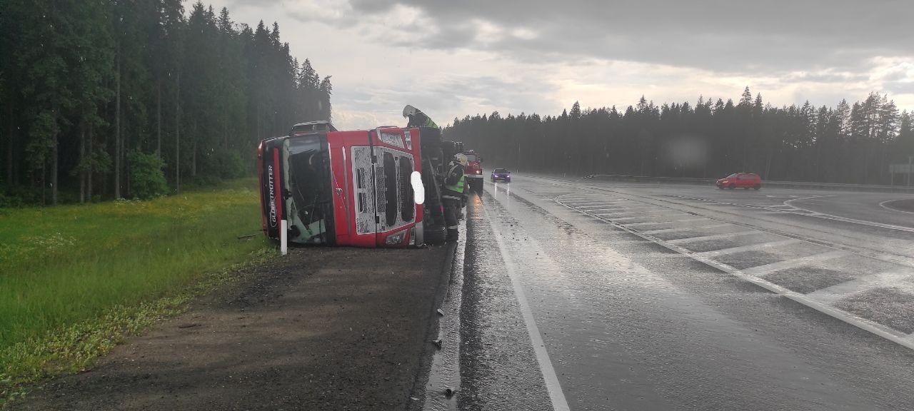 В 16:50 в Пряжинском районе на 406 км автодороги «Кола» 37-летний водитель Volvo съехал с дороги, фура опрокинулась на бок. Травмирован водитель. Проводятся проверки.