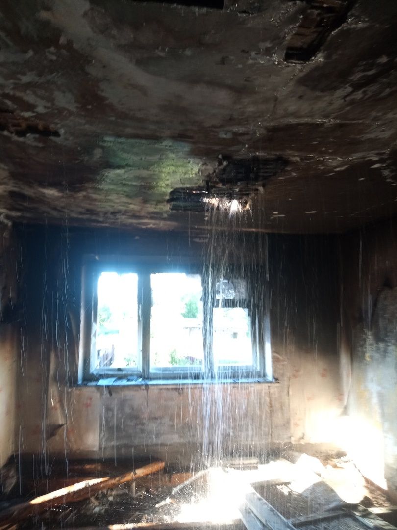 Огонь перекинулся на чердачное помещение и крышу дома. В результате пожара квартира и кровля получили серьезные повреждения.