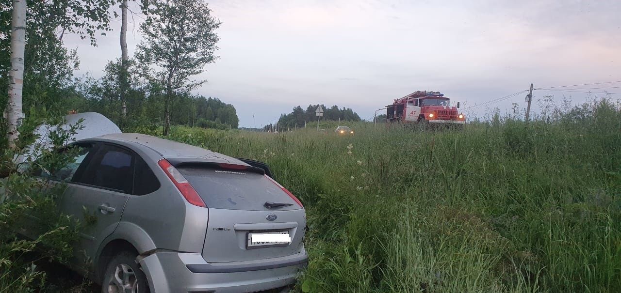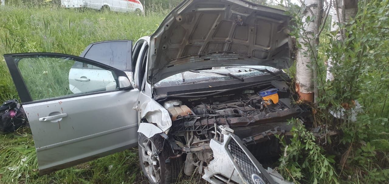 Легковой автомобиль Форд столкнулся с лосем, переходившим проезжую часть дороги, после чего выехал за пределы дорожного полотна и столкнулся с деревом, — говорится в сообщении.